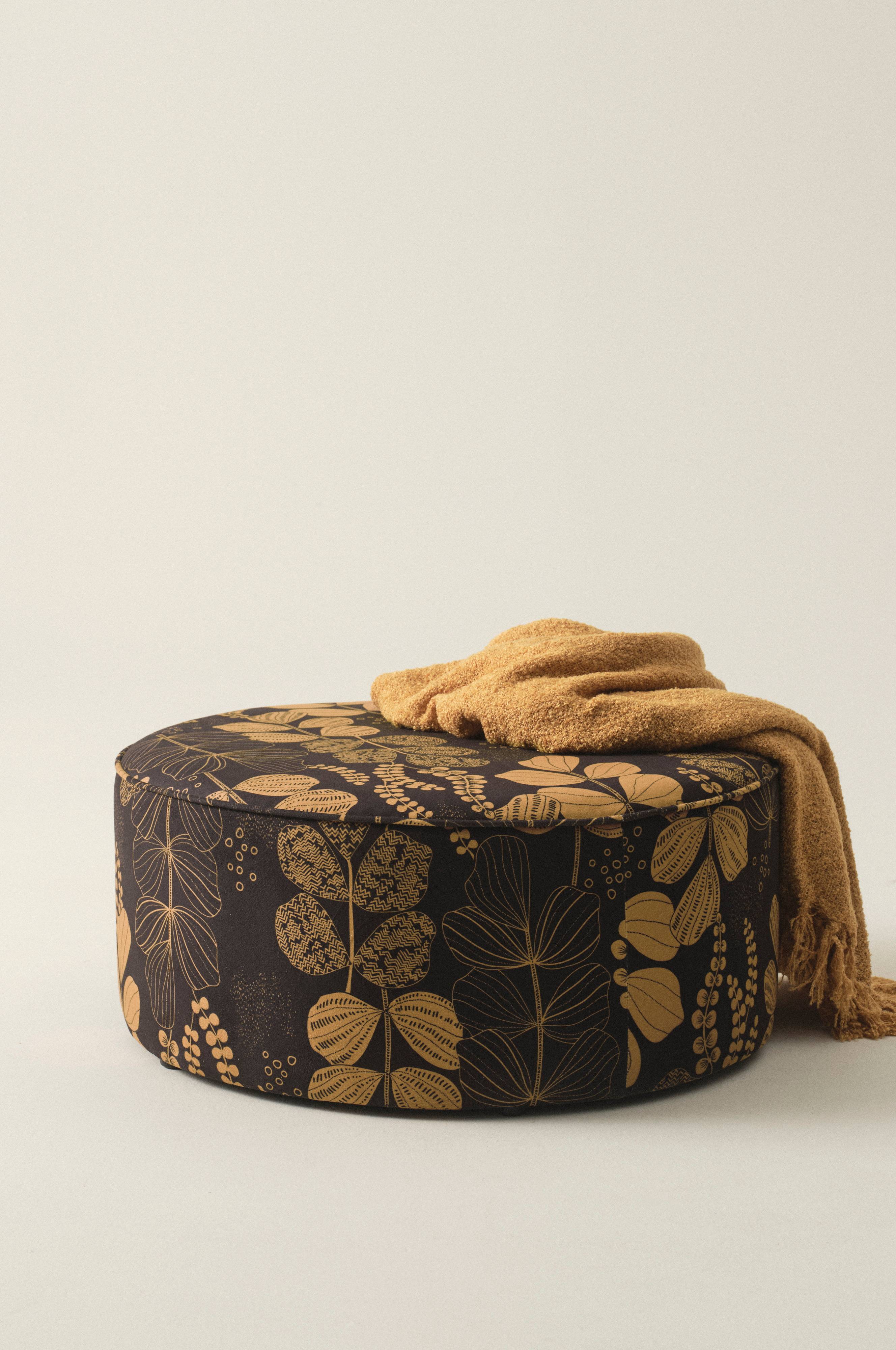 CALTHA is een ronde poef met een polyester bekleding met een bladdessin. De poef heeft een frame van multiplex en FSC-gecertificeerd grenenhout. De schuimvulling voelt zacht en aangenaam aan. De poef is een schitterend meubel dat je op veel verschillende manieren kunt gebruiken. Bedenk zelf waar hij het meest tot zijn recht komt in jouw huis.
