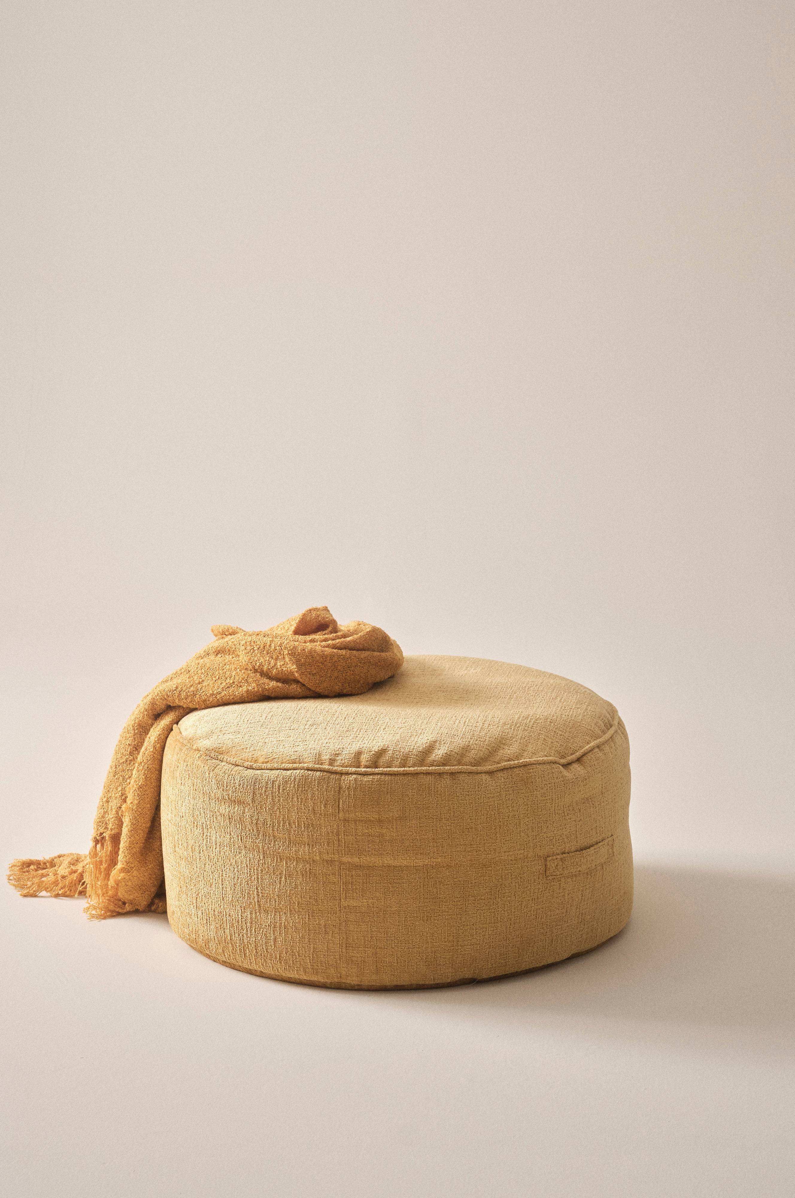 Een zitpoef met een fluffy bekleding van polyester en een zachte vulling van schuimbolletjes. De poef heeft een afgebiesde rand rondom en is dankzij het handvat op de zijkant eenvoudig te verplaatsen en op te tillen. De robuuste stof heeft een slijtvastheid van 40.000 Martindale. De bekleding is niet afneembaar.