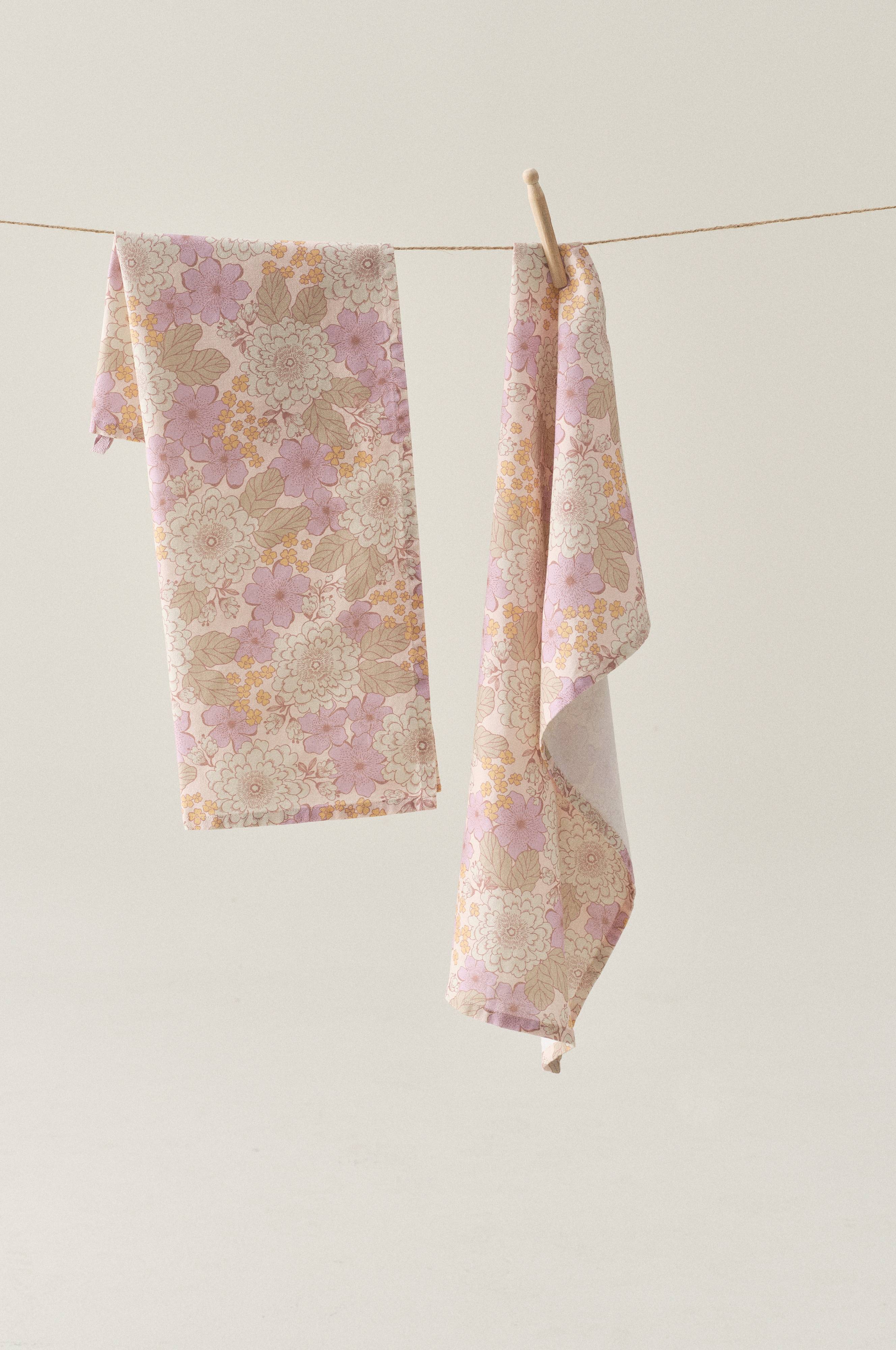 Een set van twee theedoeken met een mooi bloemendessin ontworpen door Maria Carlberg. De bloemen zijn geprint in zachte pastelkleuren die de geweldige retrolook versterken. Het aangename katoen is gewassen voor een extra zacht resultaat. Gramsgewicht 170 gr./m².