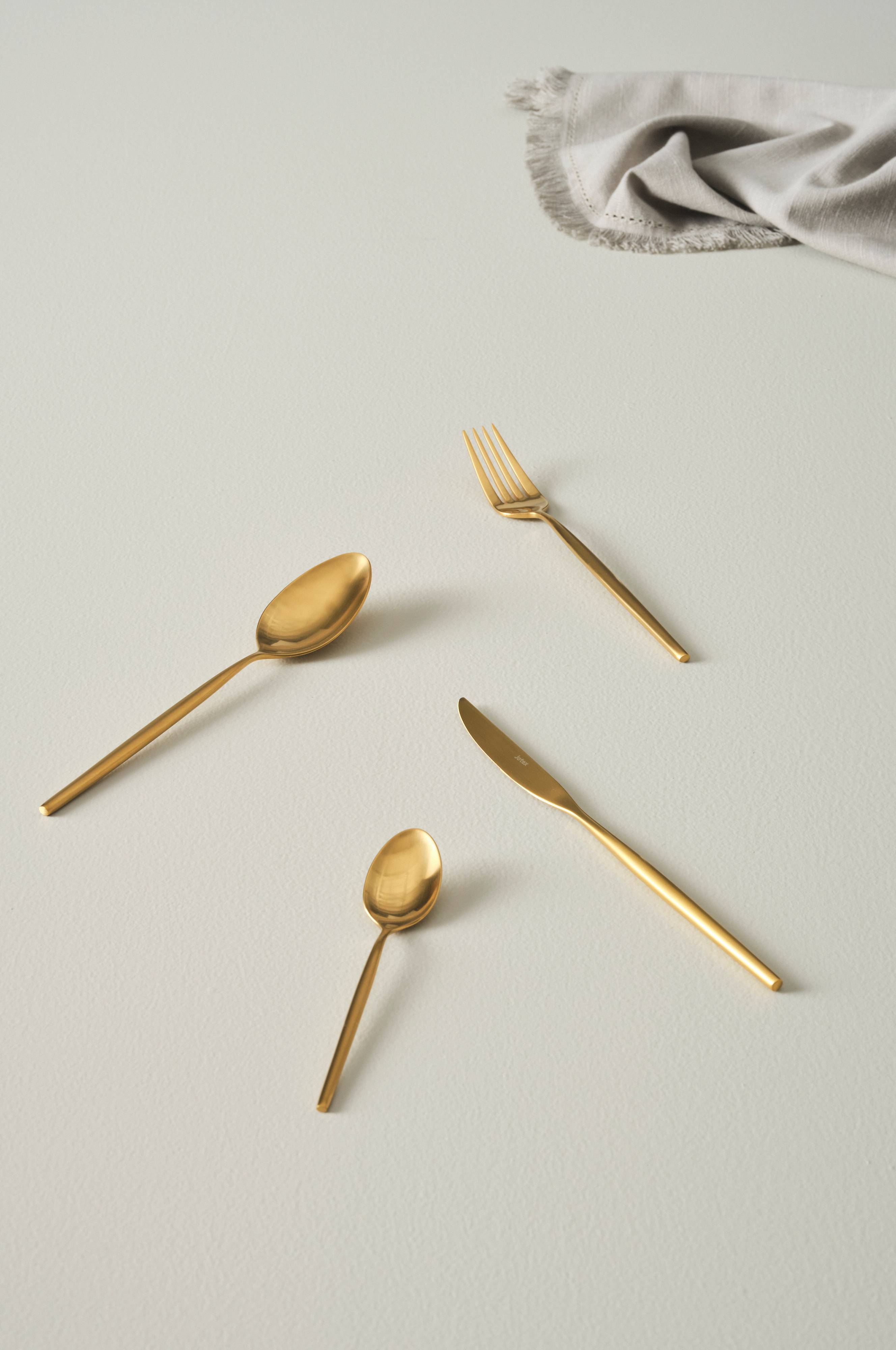 Een 24-delige bestekset. Het mooi vormgegeven, ongewoon slanke heft geeft het bestek zijn bijzondere karakter. Glanzende afwerking. De pvd-coating beschermt het bestek tegen slijtage en verlengt de levensduur. De set bestaat uit zes vorken, zes messen, zes lepels en zes theelepels. Deze bestekset geeft de gedekte tafel een trendy look.