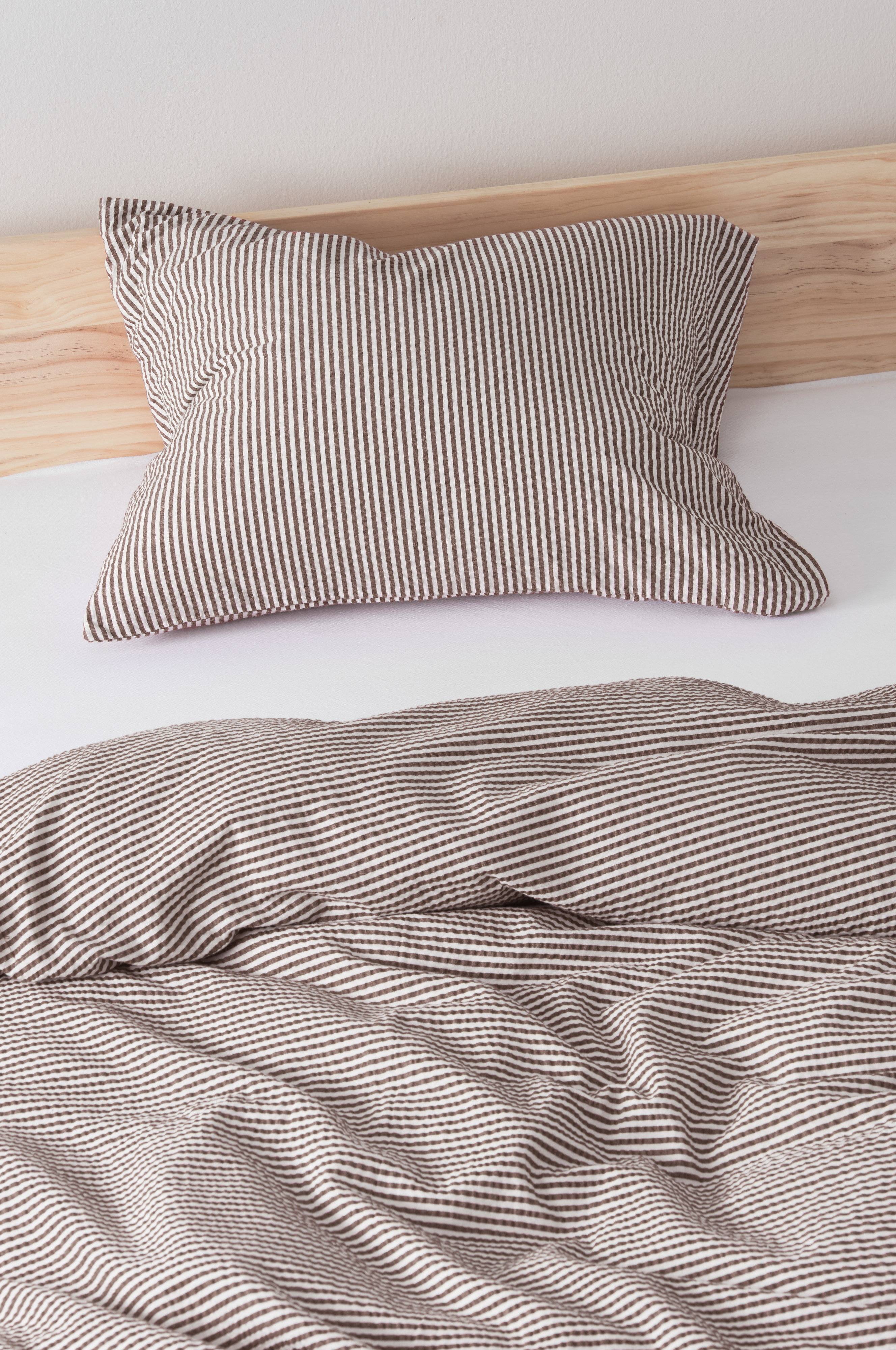 Kussensloop ALMA brengt een vleugje elegantie in je slaapkamer met zijn garengeverfde strepen en zachte bekkengolf. Deze kussensloop is voorgewassen voor een comfortabel gevoel en belooft zowel stijl als comfort. Het maakt deel uit van de Alma-familie en past perfect bij andere bijpassende objecten om een mooie samenhangende look te creëren. Het klassieke ontwerp past gemakkelijk bij elk interieur, waardoor het een ideale keuze is voor diegenen die discrete verfijning waarderen.