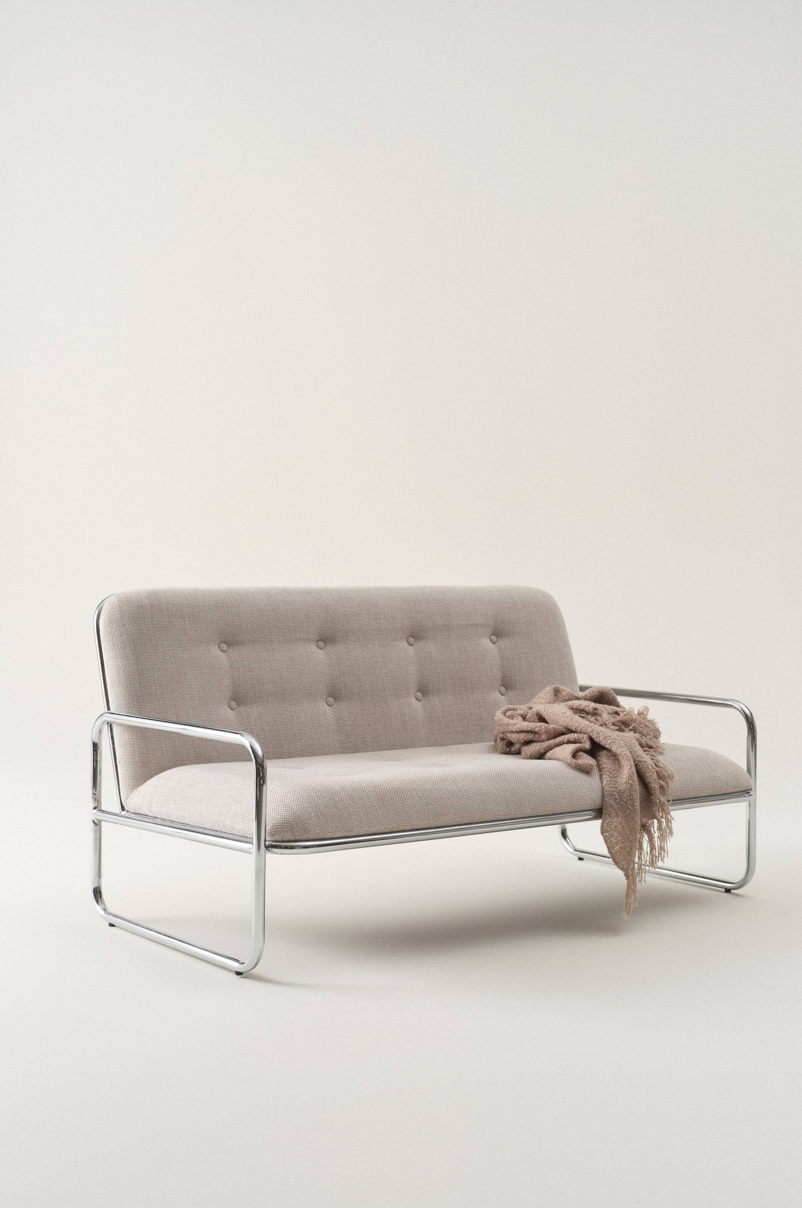 De ALMELO 2-zitsbank is een iets lagere zitbank met een robuust buisframe van verchroomd ijzer. De zitting en rugleuning hebben een zachte vulling en zijn bekleed met slijtvaste stof van polyester/acryl. De stof is slijtvast met een Martindale van 50.000. ALMELO heeft een mooie retrovibe door de mix van chroom en de robuuste stof, de gecapitonneerde knopen en het heerlijke model. Je zit laag en comfortabel in ALMELO. De bekleding is niet afneembaar. Enige montage is vereist. Montage-instructies worden meegeleverd.