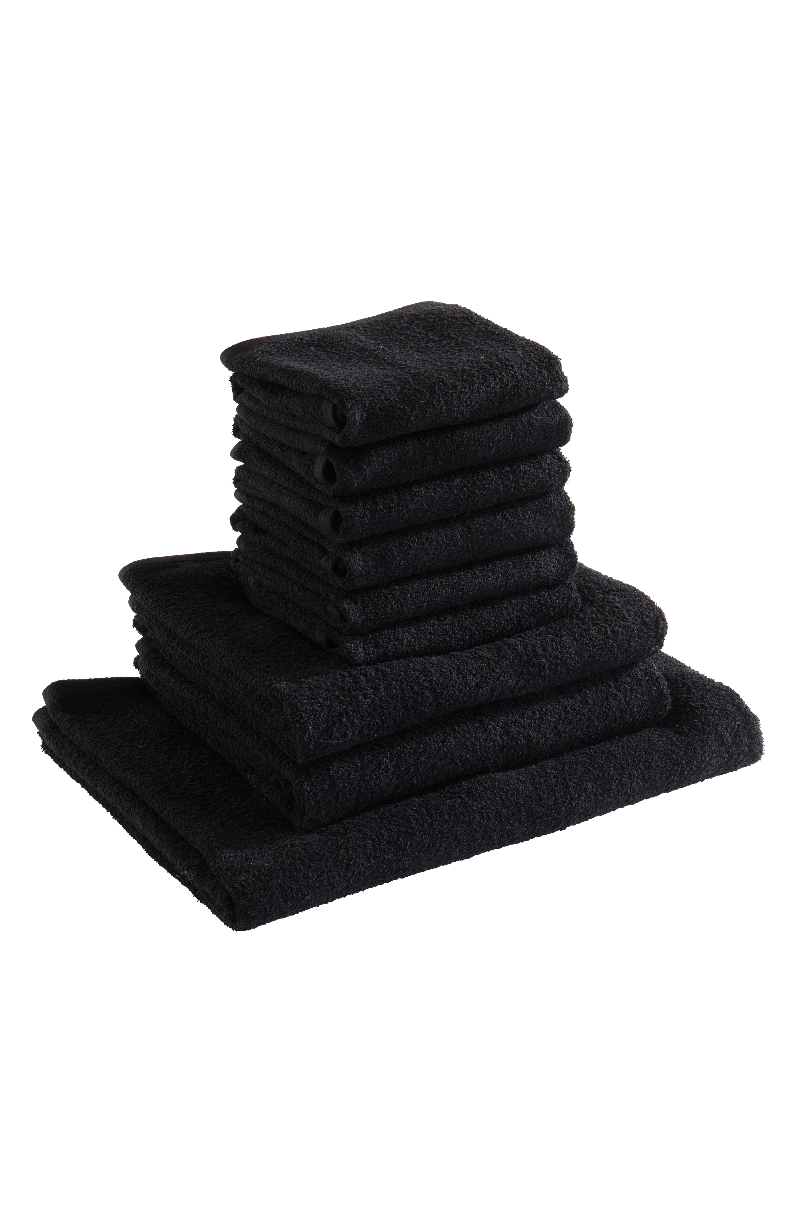 Een 9-delige set van zachte, effen katoenen badstof die snel droogt (gramsgewicht 360 g/m²). Maak van je badkamer één geheel met al je badstof artikelen in dezelfde kleur. De badstof set bestaat uit zes handdoeken, twee badhanddoeken en een badlaken.