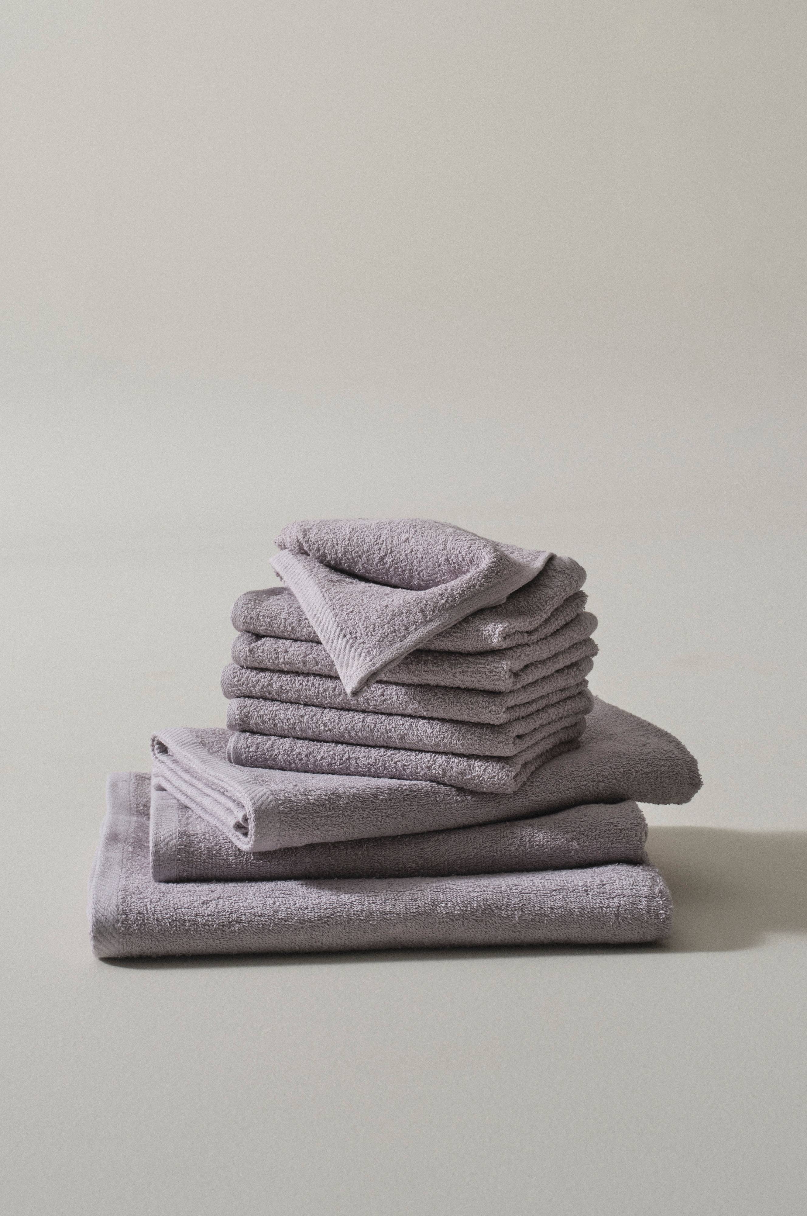 Een 9-delige set van zachte, effen katoenen badstof die snel droogt (gramsgewicht 360 g/m²). Maak van je badkamer één geheel met al je badstof artikelen in dezelfde kleur. De badstof set bestaat uit zes handdoeken, twee badhanddoeken en een badlaken.