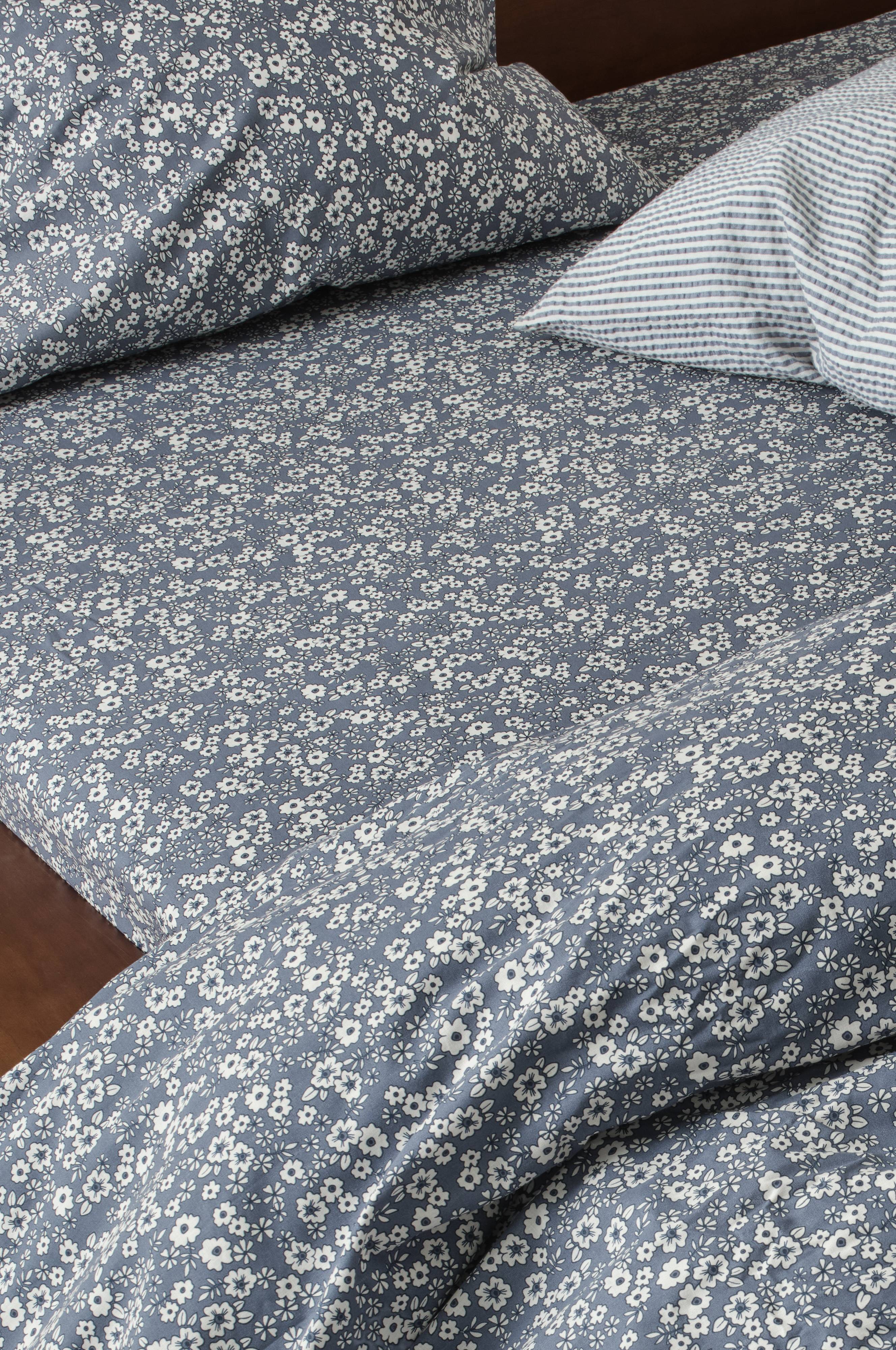 Katoenen treklaken met geprint patroon. Het kleine bloemenpatroon is in harmonieuze kleurschakeringen die zowel nieuw als retro ademen. Het hoeslaken heeft elastische hoeken. De elastische rand zorgt ervoor dat het laken goed op het matras ligt.