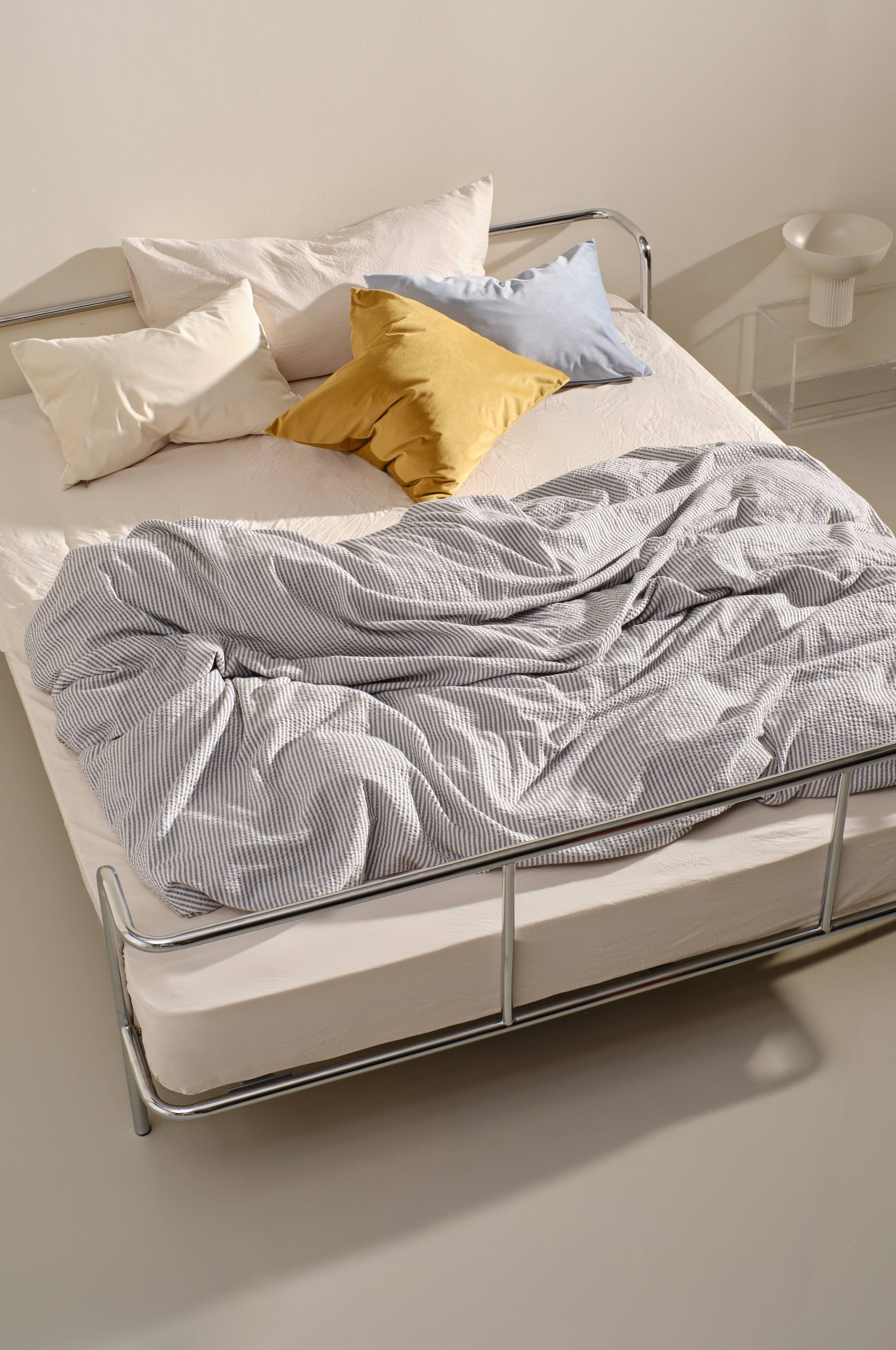 ANIE bedframe geeft een strakke touch aan elke slaapkamerruimte met zijn verchroomde ijzeren buisconstructie, die robuuste ondersteuning en moderne stijl biedt. Dit minimalistische ontwerp heeft een eigentijdse uitstraling en past naadloos in verschillende interieurthema's. Perfect voor wie houdt van strakke lijnen en ingetogen elegantie, is het ANIE bedframe zowel een praktische als stijlvolle keuze voor je slaapkamer, en zorgt het voor een stevige basis voor een goede nachtrust.