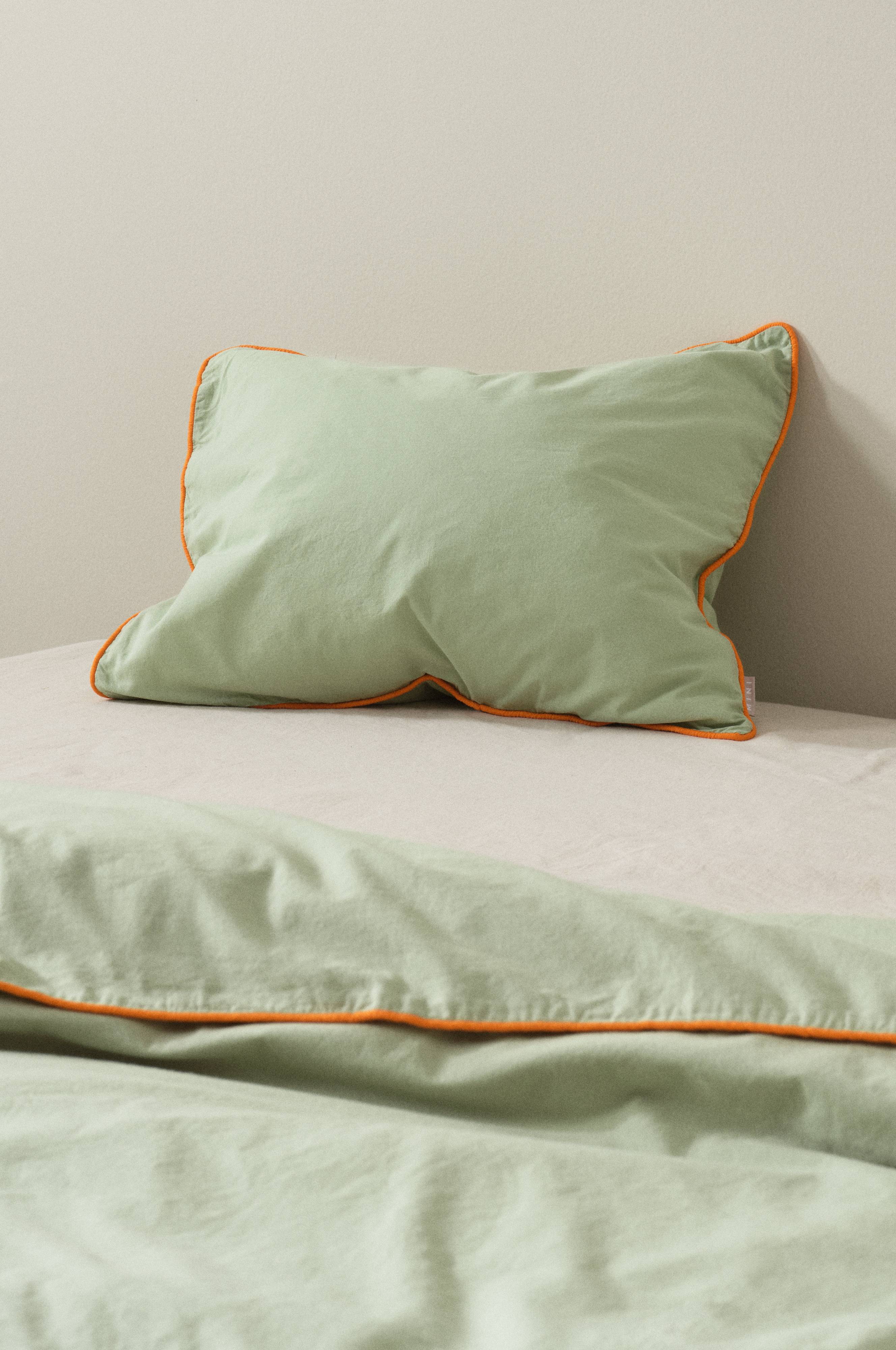 Een kussensloop van biologisch katoen. AVA is een klassieke, effen serie waaraan nu een uitvoering met een biesje in een heerlijk contrasterende kleur is toegevoegd. Beddengoed van biologisch katoen voelt licht en zacht aan. Het beddengoed in de beddengoedserie AVA is na het naaien gewassen, waardoor het extra zacht aanvoelt. Draaddichtheid 144. (De draaddichtheid geeft het aantal draden aan per vierkante inch van een stof. Hoe hoger de draaddichtheid, hoe hoger de kwaliteit).