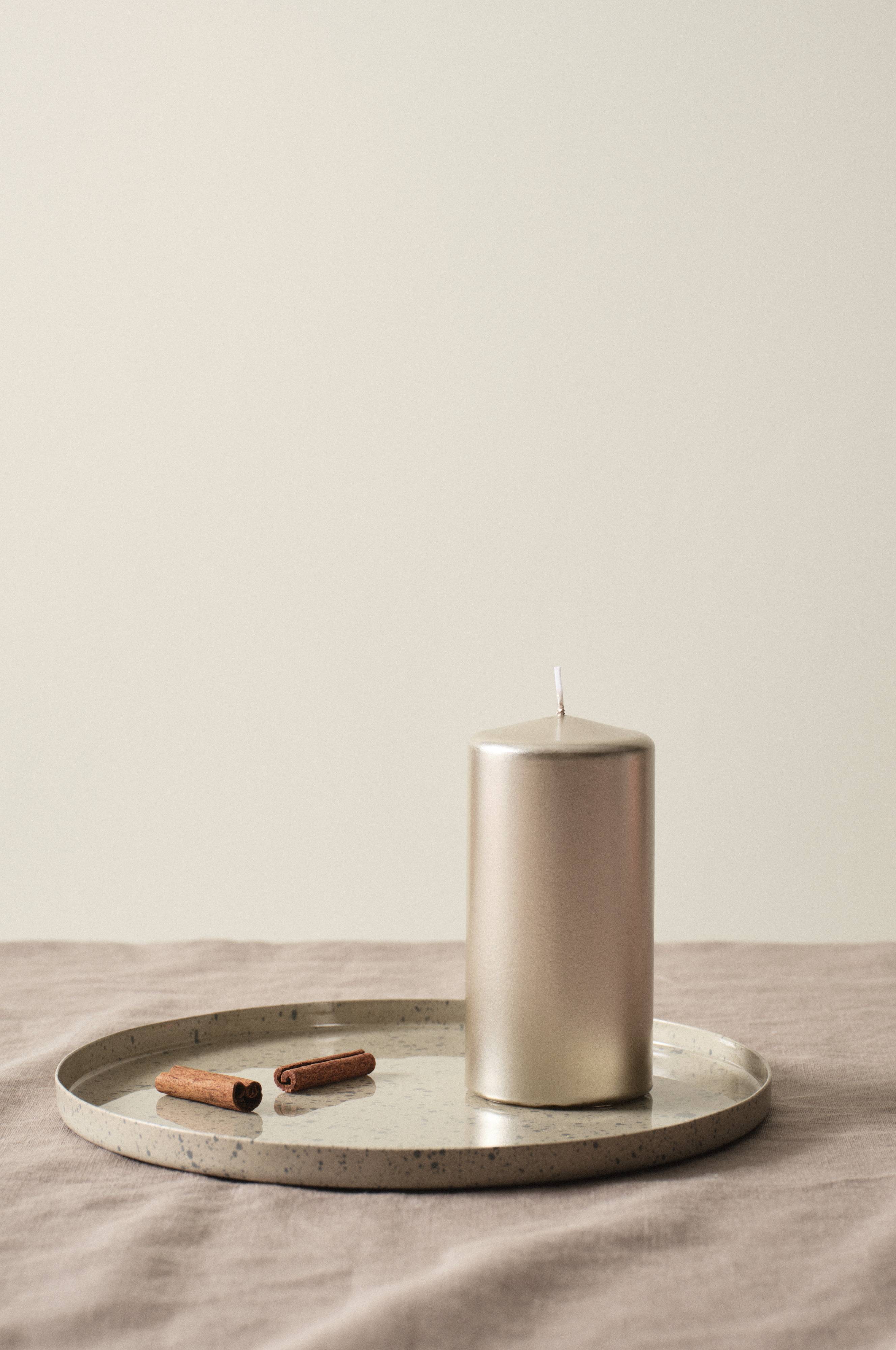 Een stompkaars van paraffine die in een metallic kleur is gedoopt. Deze mooie kaars is met de hand gemaakt in Zweden. Kaarsen brengen een gezellige sfeer in huis als het buiten donker is. Paraffine heeft goede brandeigenschappen en het RAL-keurmerk laat zien dat de paraffine met weinig rook en roet brandt.