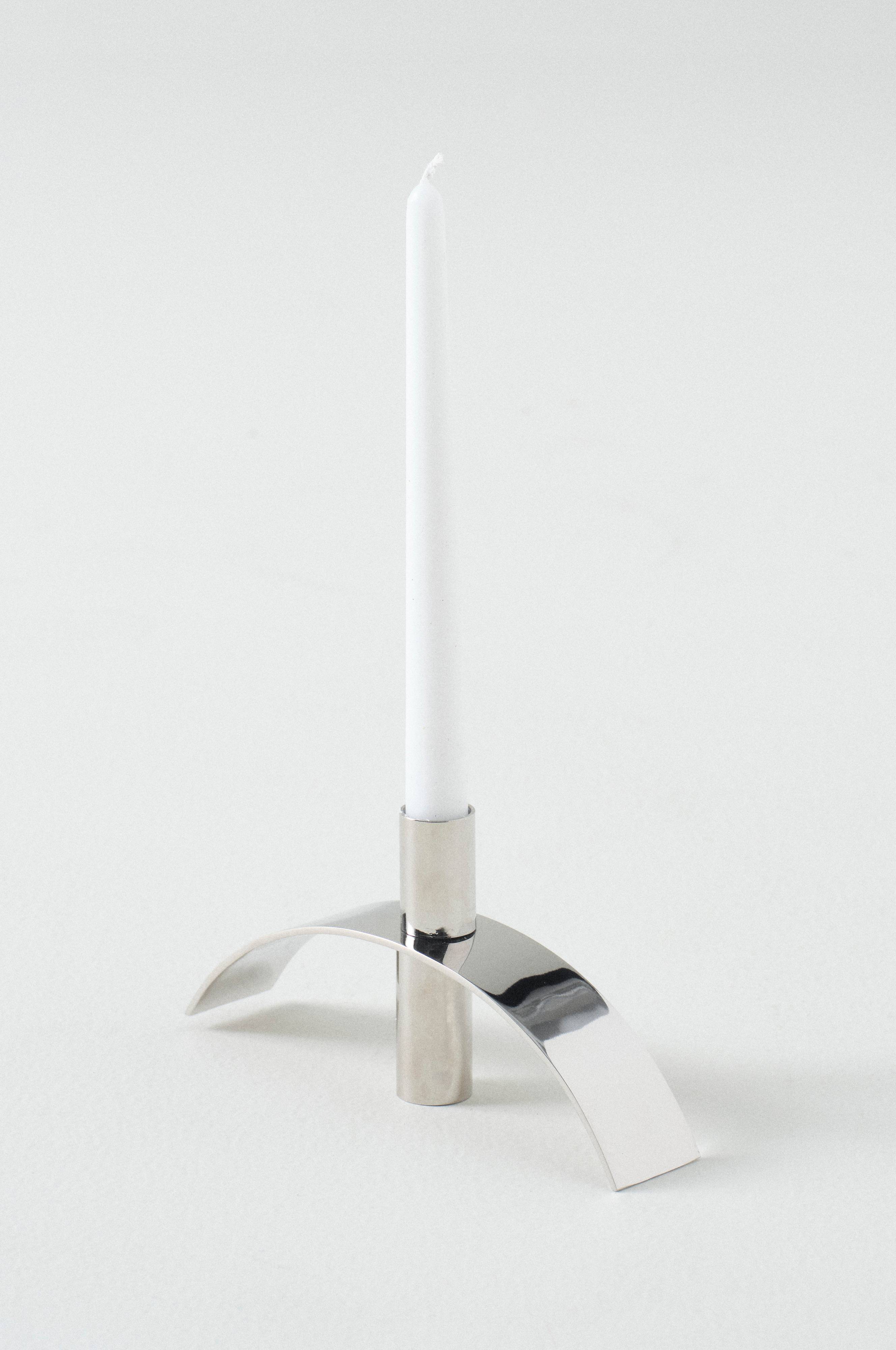 Een kandelaar van roestvrij staal met een glanzende afwerking. De kandelaar heeft een stijlvolle vorm die in veel interieurs past. BRIDGET heeft een klassieke uitstraling en maakt grote kans om je favoriet te worden. Een kaars is niet inbegrepen.
