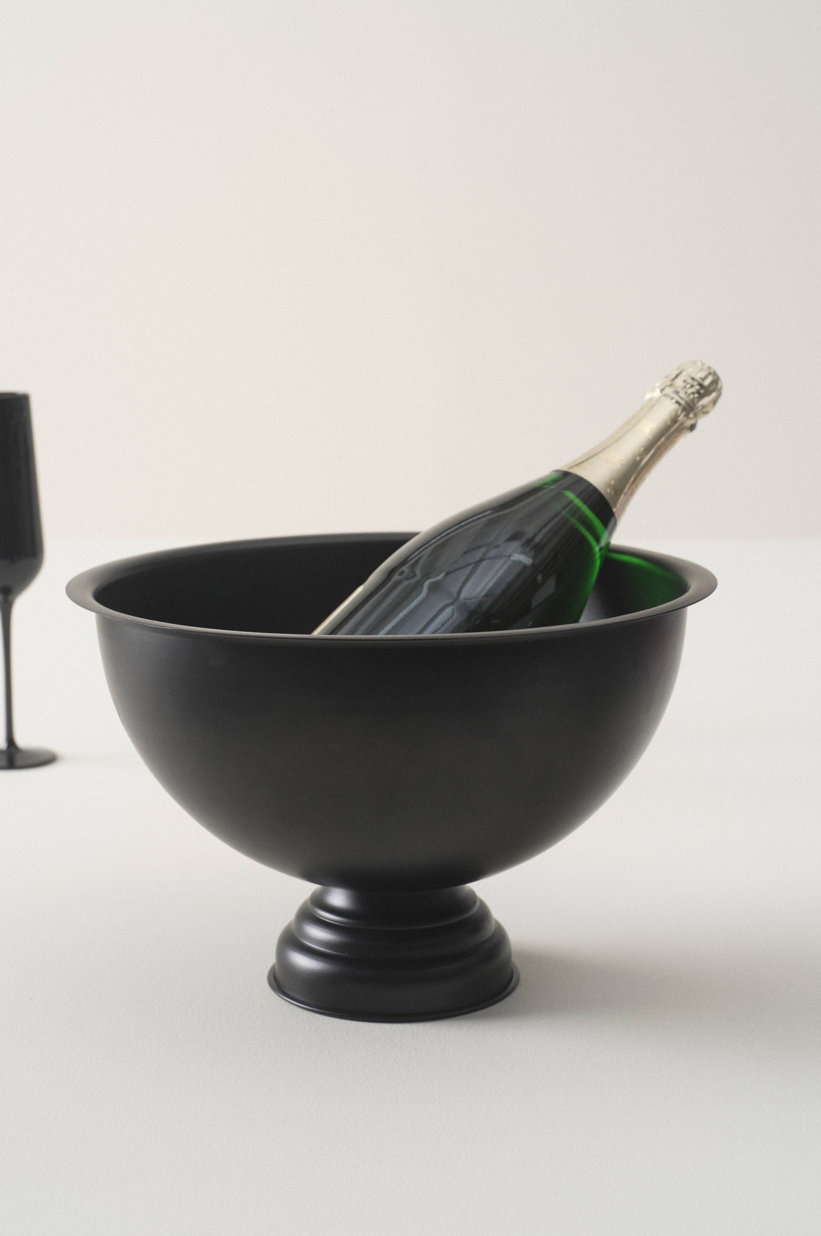 Een wijnkoeler van ijzer met een matzwarte afwerking. De zachte vorm gecombineerd met het ranke materiaal heeft een exclusieve uitstraling. Gevuld met ijs koelt deze mooie wijnkoeler meer dan één fles.