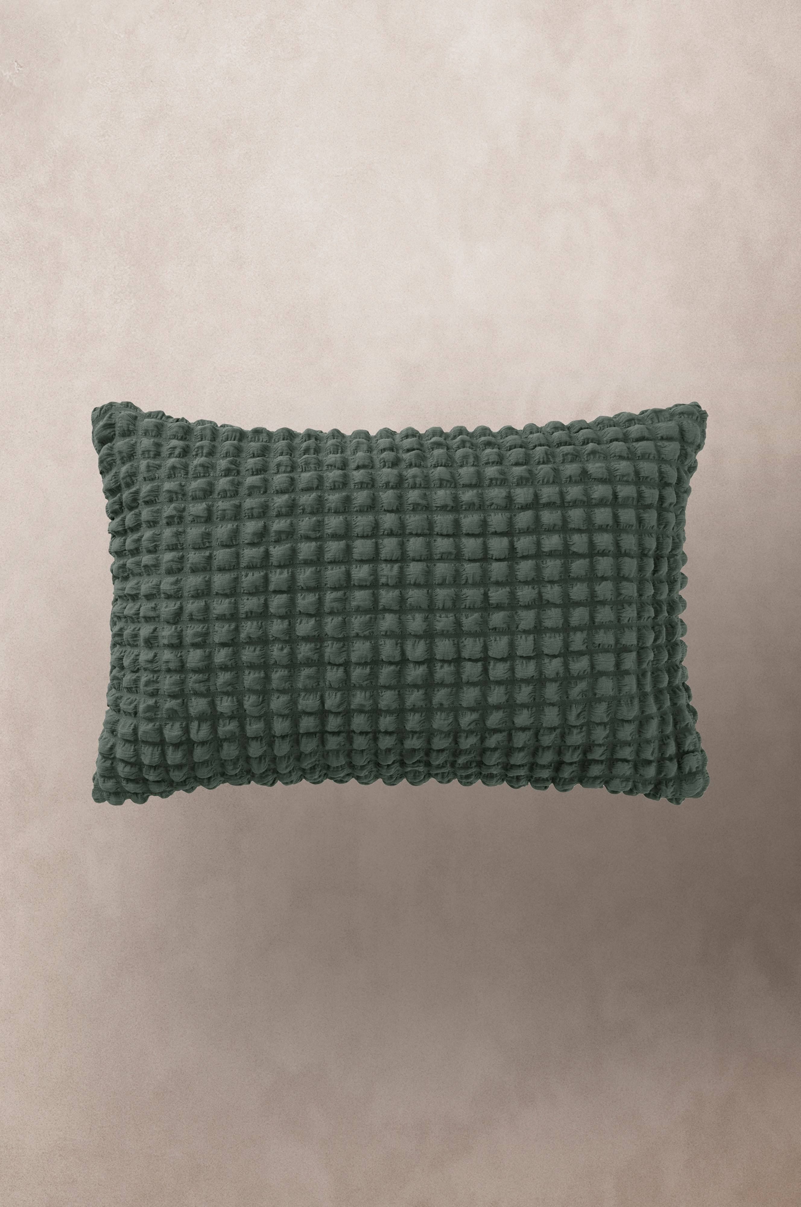 Een kussenhoes in een gebobbelde, opvallende stof van polyester met spandex. De kwaliteit in combinatie met de weeftechniek geeft de stof een bijzonder effect: een zachte, elastische bobbelstructuur. De kussenhoes is gevoerd met een geweven stof. Blinde ritssluiting aan de onderkant.