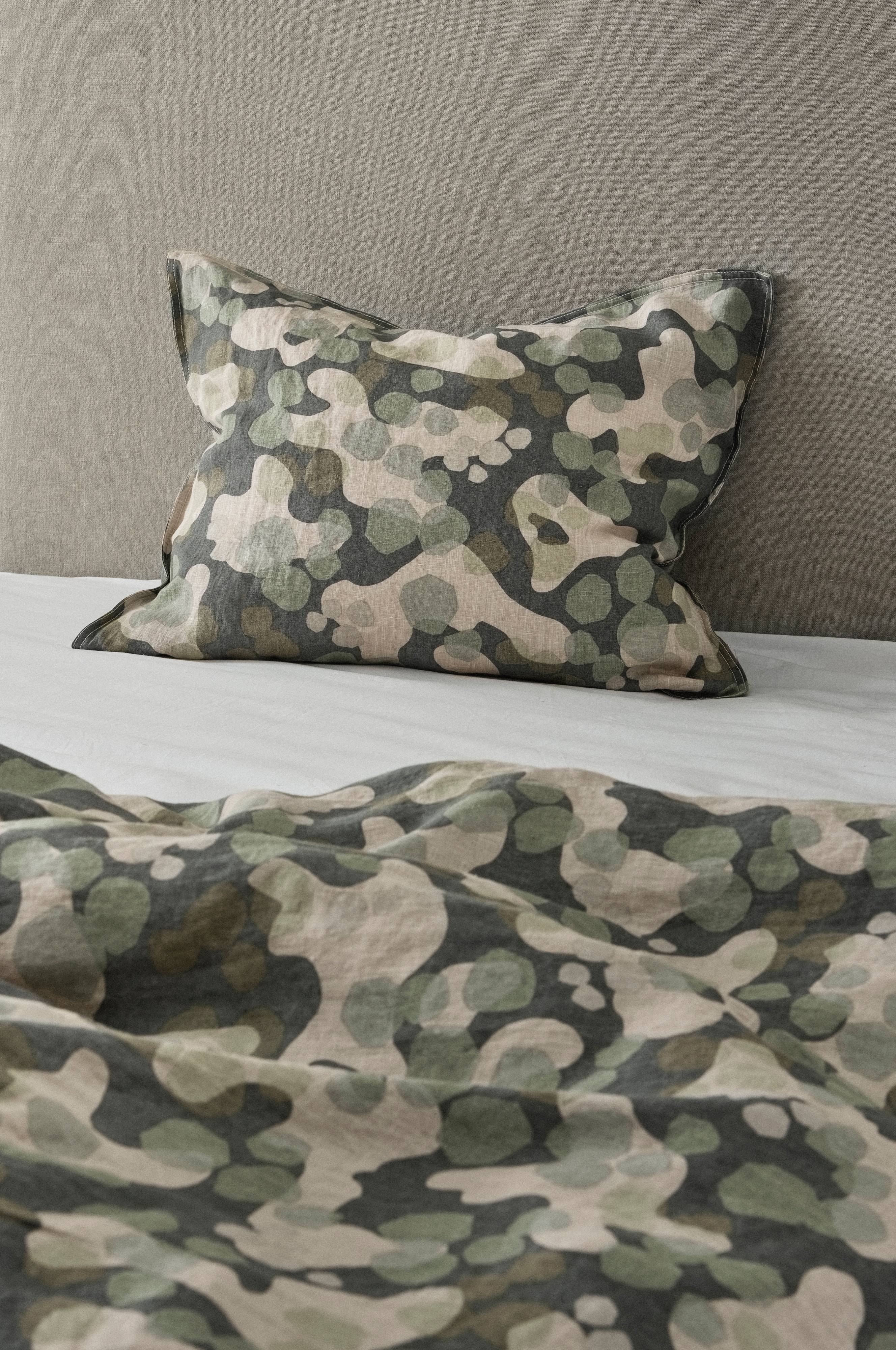 Kussensloop van natuurlijk en behaaglijk linnen met een geprint patroon ontworpen door Maria Carlberg. De comfortabele linnen kwaliteit is gewassen tot heerlijk zacht en comfortabel om in te slapen. CARA heeft een mooie dubbele naad rondom en een rits als sluiting.