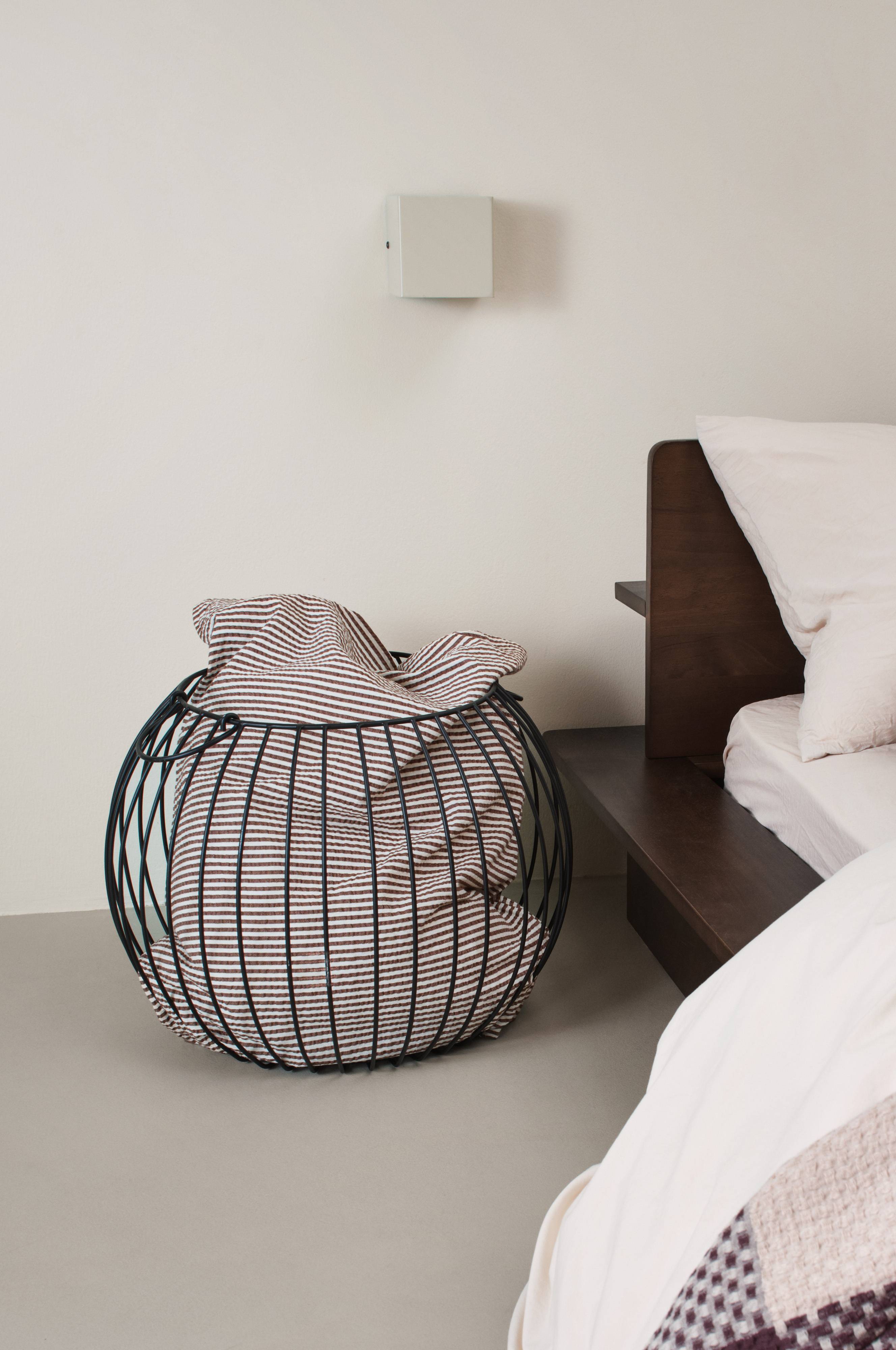 Een met de hand gemaakte opbergmand van ijzer met een mooie finish. De draadmand heeft een fraaie ronde vorm en twee handgrepen. Een ideale, decoratieve opbergplek, bijvoorbeeld om mooie sjaals in de hal of plaids in de woonkamer in te bewaren. Het handwerk maakt elke draadmand uniek.