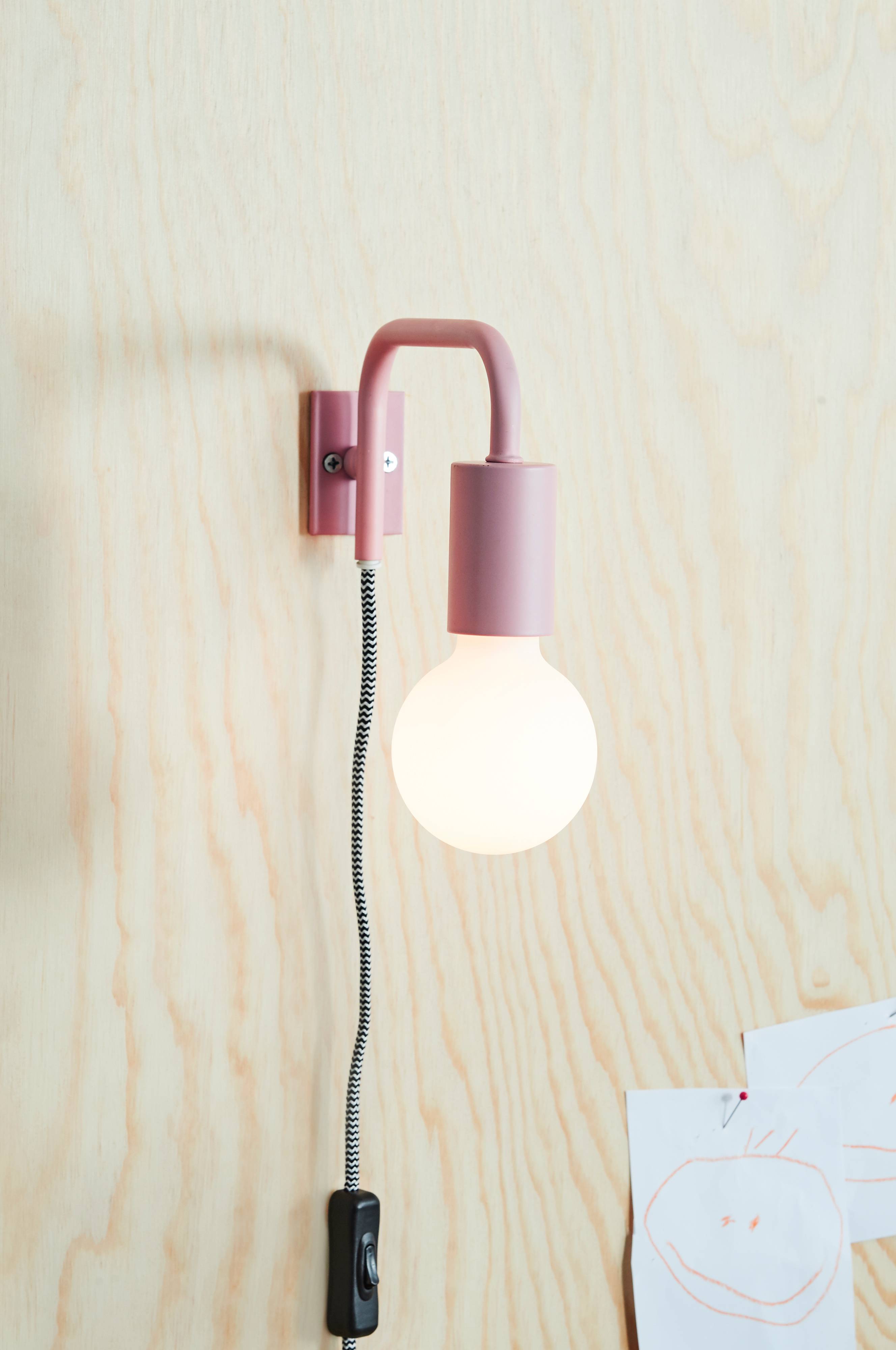 Een metalen wandlamp in vrolijke kleuren. De lamp kan bijvoorbeeld aan de wand boven een schrijftafel of boven een bed worden gehangen. Bovendien personaliseer je de lamp met je keuze van gloeilamp. Textielsnoer 1,8 m.