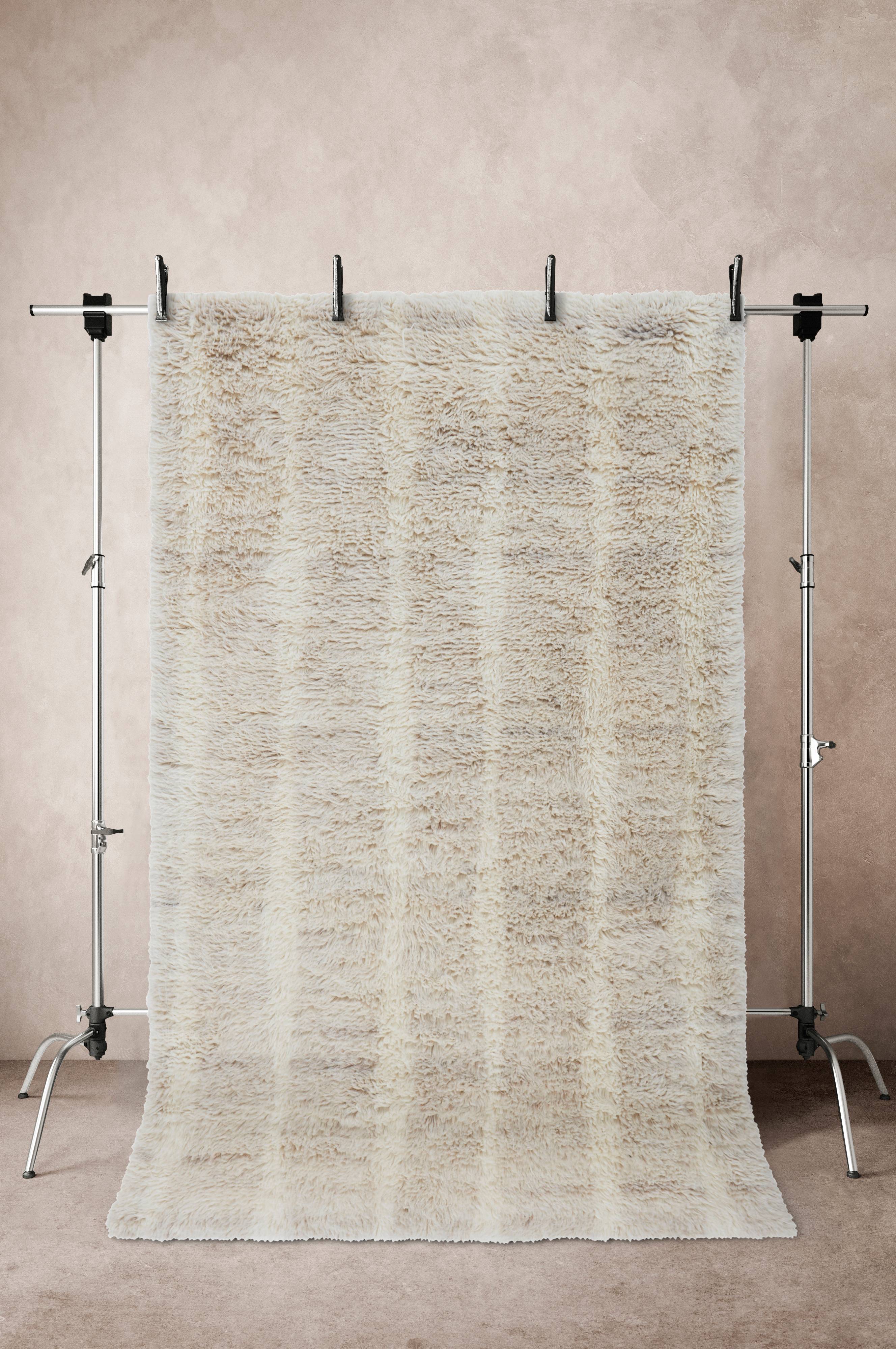 Een met de hand geknoopt wollen vloerkleed met een hoge pool van stevig wollen garen. Een klassiek ryavloerkleed. CEPPA heeft een zachte, aangename kleurstelling met strepen van gekleurd garen. Vloerkleed CEPPA creëert een prettig warm en harmonieus gevoel in de kamer. Wollen vloerkleden zijn van nature heerlijk warm, bestendig en vuilafstotend. Poolhoogte 4 cm. Dikte 5 cm. 2600 gr./m².