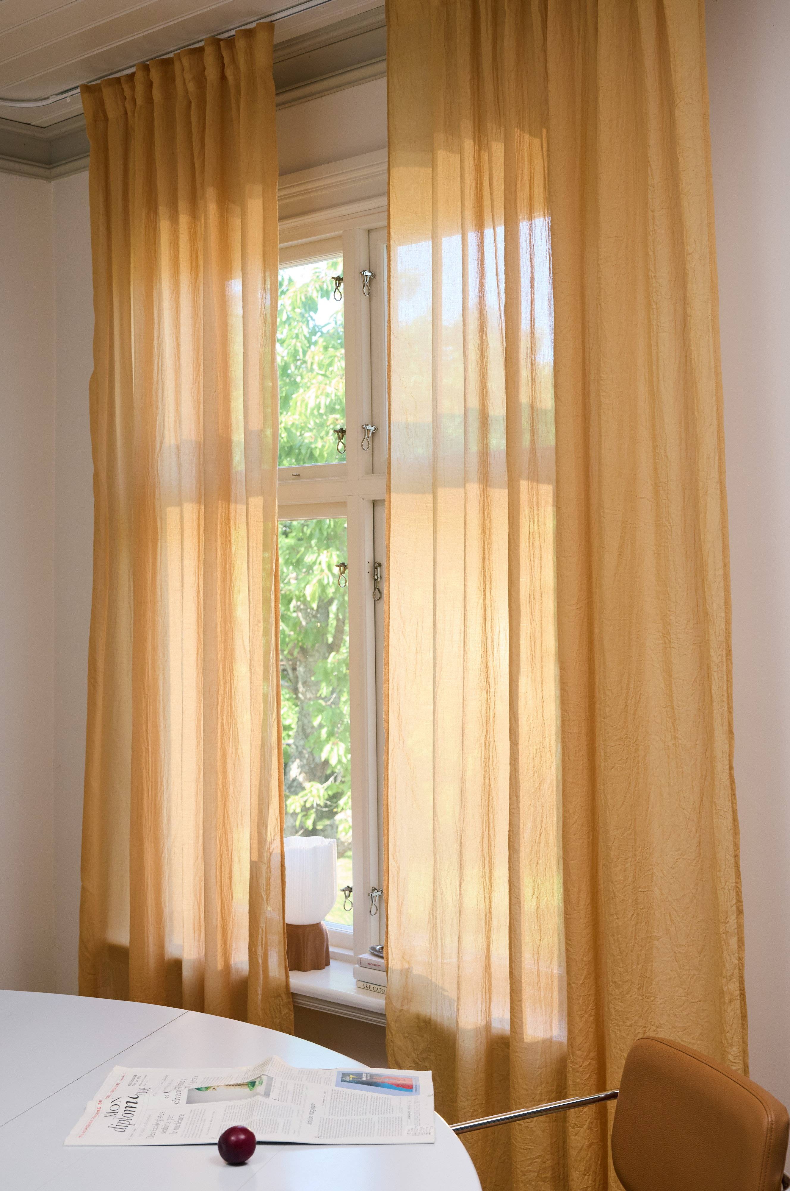 Twee gordijnlengtes in stof die een mooie valling geven. De effen gordijnlengtes zijn er in verschillende kleuren, zodat je ze gemakkelijk kunt combineren.