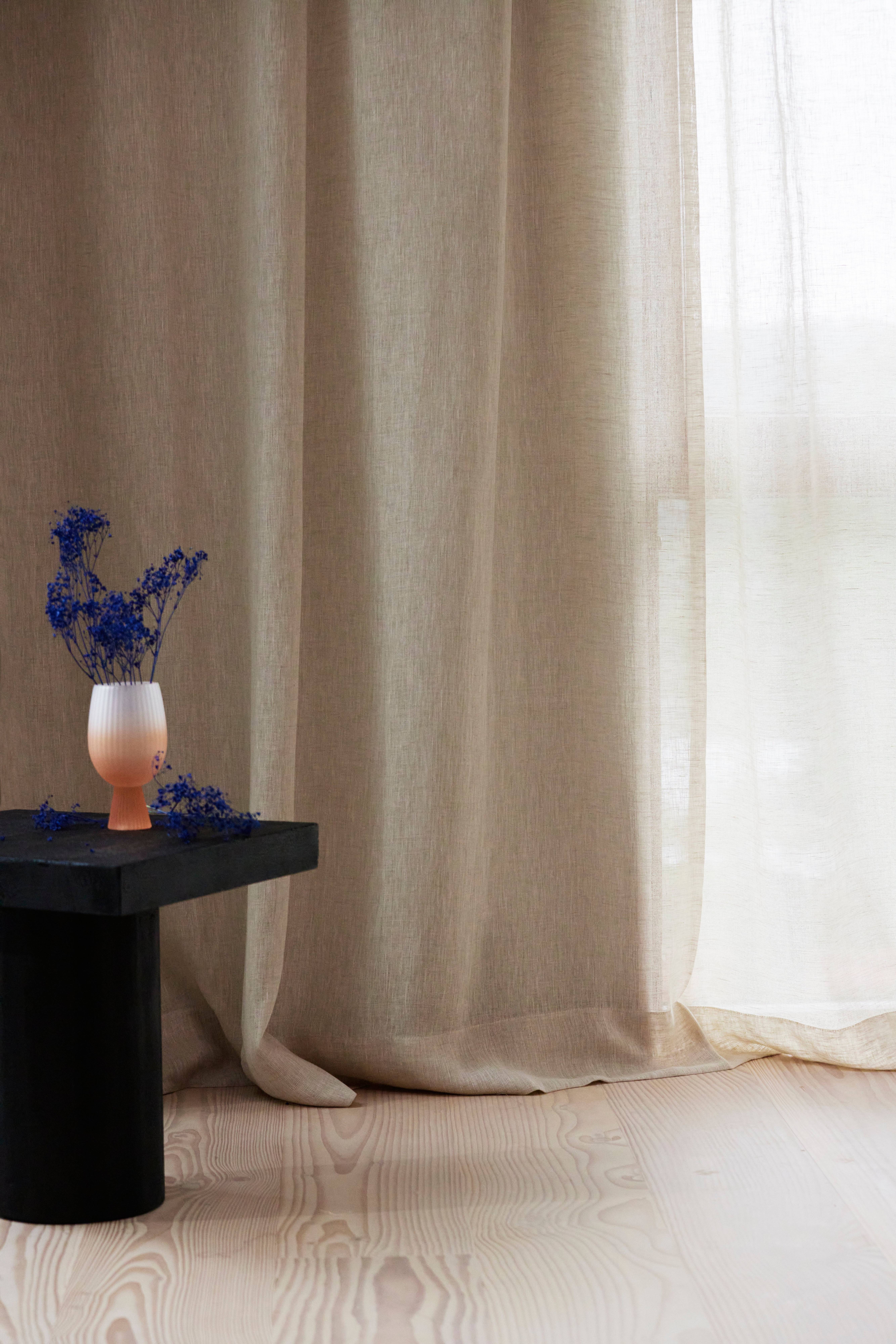 CLEO is een delicaat en luchtig gordijn van echt linnen met een iets spaarzamere weving. Linnen is een exclusieve kwaliteit met een mooie structuur. De stof van CLEO valt gemakkelijk en het licht filtert de kamer in. Als je de zonnestralen wilt weren of het uitzicht wilt beperken, kun je het gordijn sluiten en toch het licht binnenlaten. Linnen gordijnen zijn net zo mooi soepel uitgerekt als licht gekreukt. Het CLEO gordijn is gemaakt van Europees gecertificeerd vlaslinnen. De lengtes hebben opgenaaide, transparante multifunctionele tape aan de bovenkant en ze kunnen worden opgehangen met vingerhaken, een goot en een verborgen hanger.