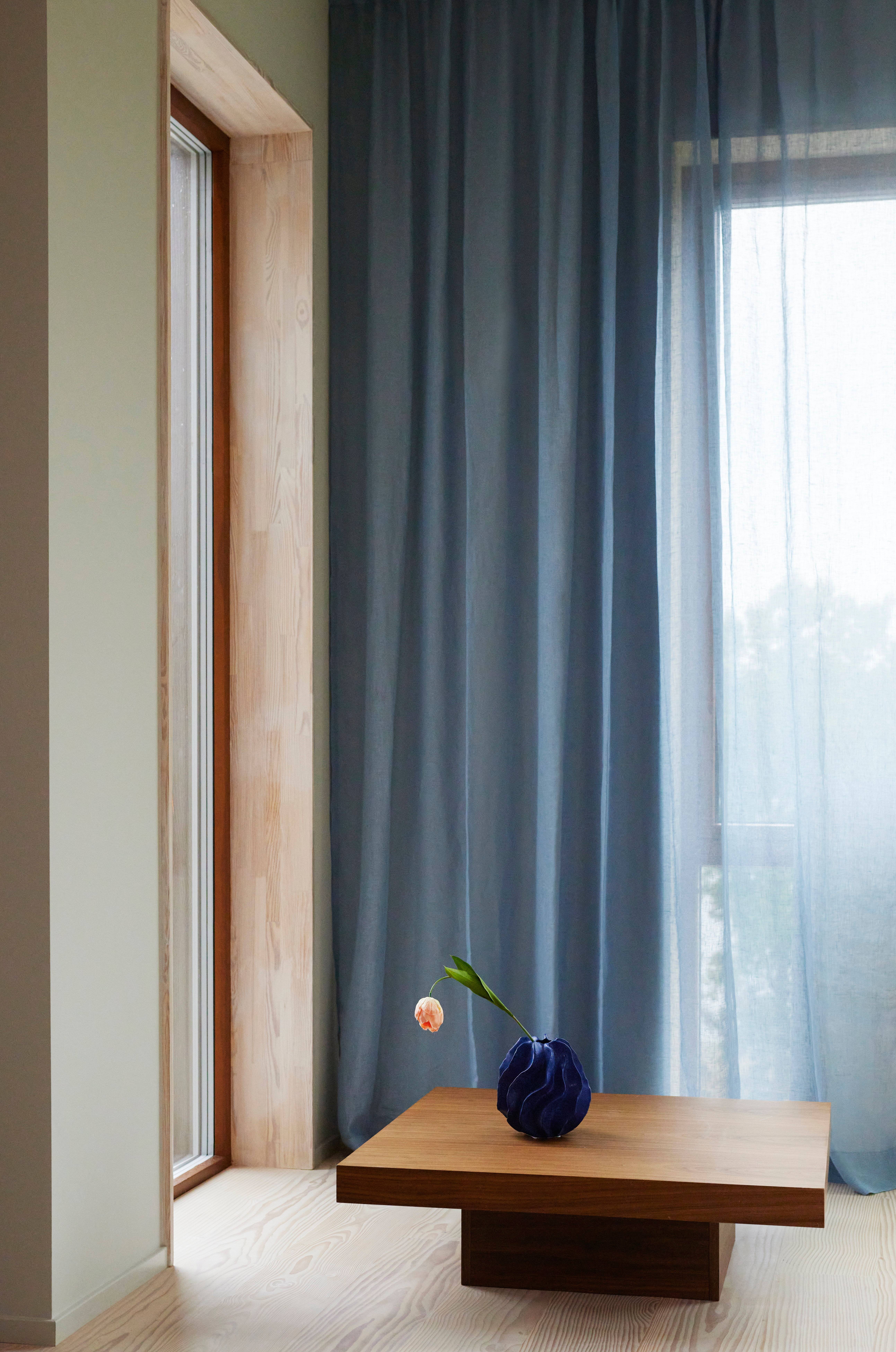 De gordijnen worden met de hand genaaid en gezoomd in onze studio in Borås. Om een mooie valling en exclusief gevoel in het gordijn te krijgen, naaien we kleine zakken voor gewichten aan de onderkant en is de zoom ook extra breed. Omdat elk gordijn uniek voor jou wordt gezoomd, kunnen deze gordijnen een langere levertijd hebben.