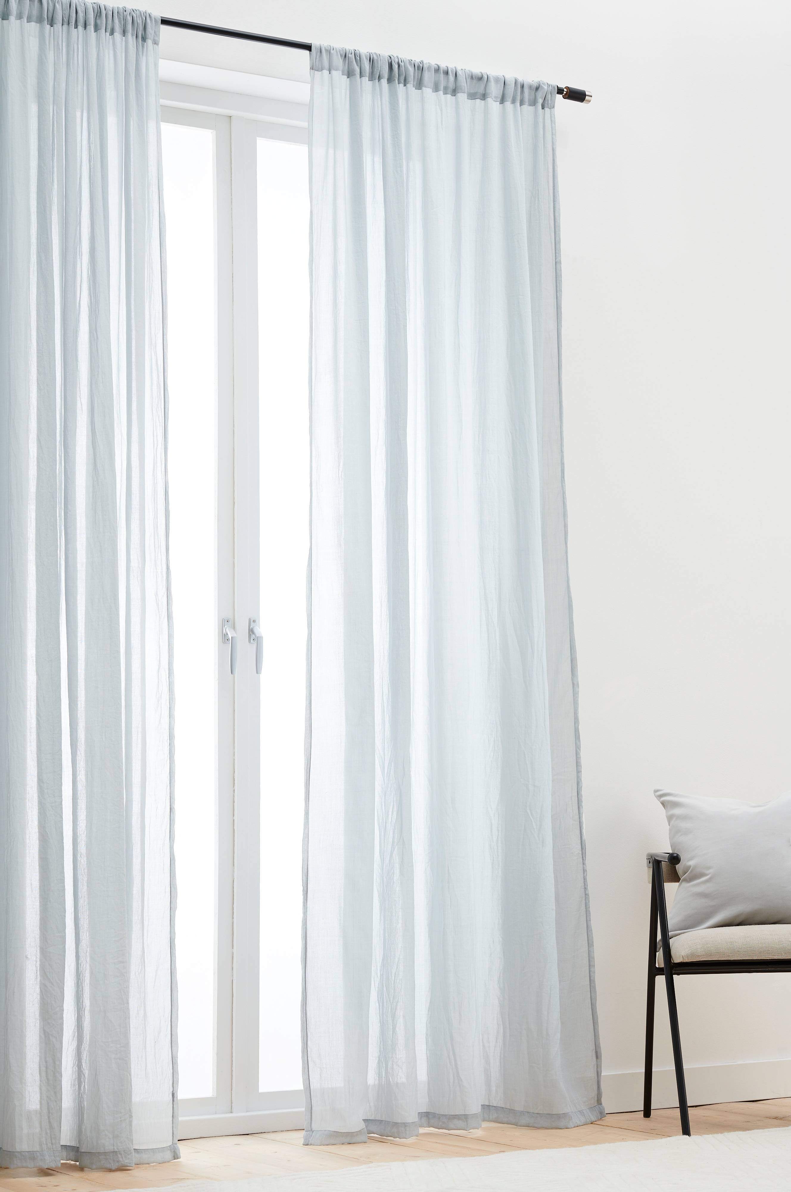 Een set van twee gordijnen van gemêleerde polyester/katoenmix met een crinkle-effect. Een geweven gordijn van gewassen polyester/katoenmix met een crinkle-effect voor een zachte uitstraling. COCOON is een transparant gordijn dat veel licht doorlaat. De gemêleerde kwaliteit geeft een levendig effect.