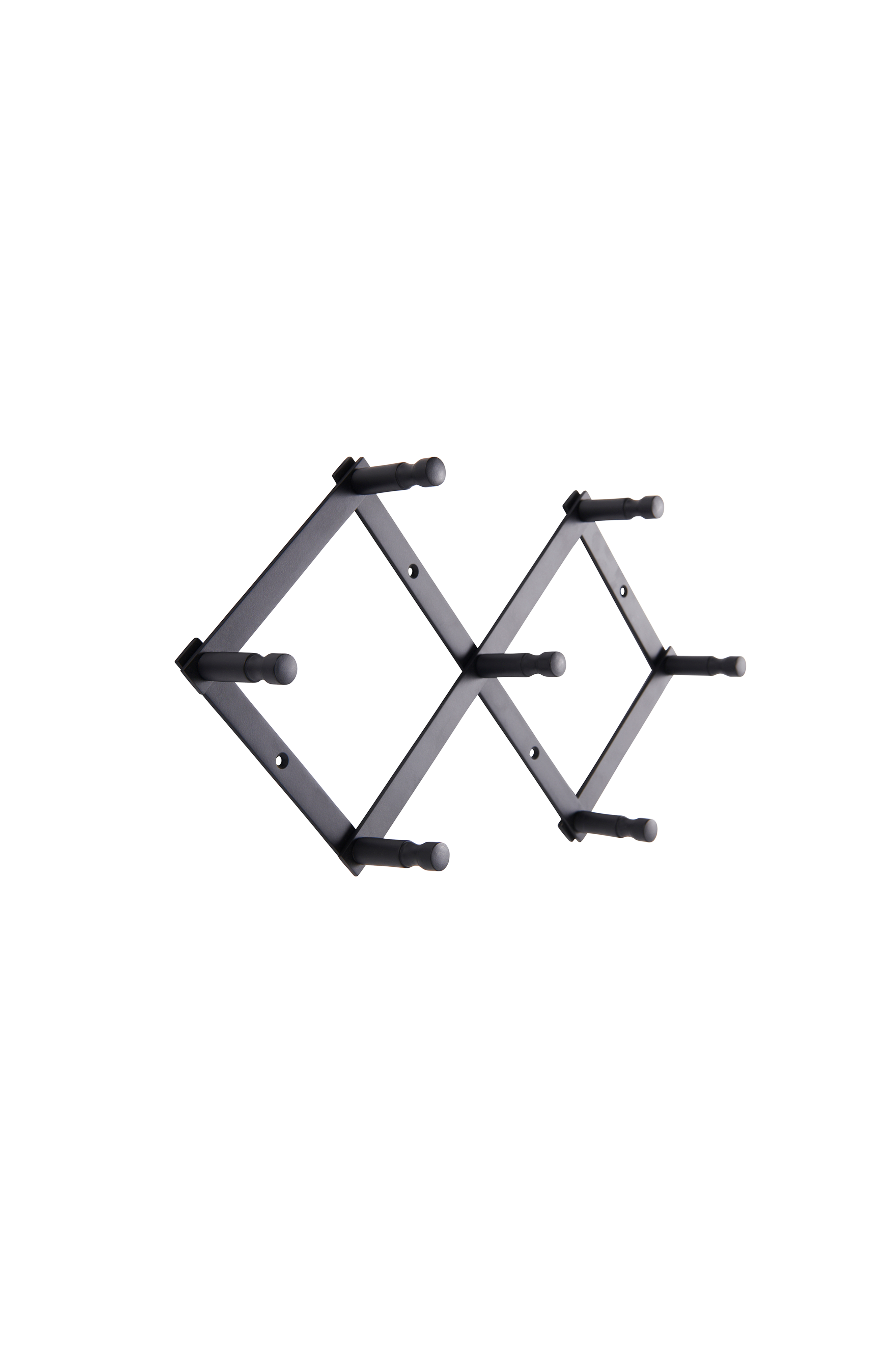 Verstelbare hanger van metaal met zeven knoppen. Een decoratieve hanger voor in de hal of de slaapkamer, die ruimte bespaart en je huis een opgeruimde uitstraling geeft.