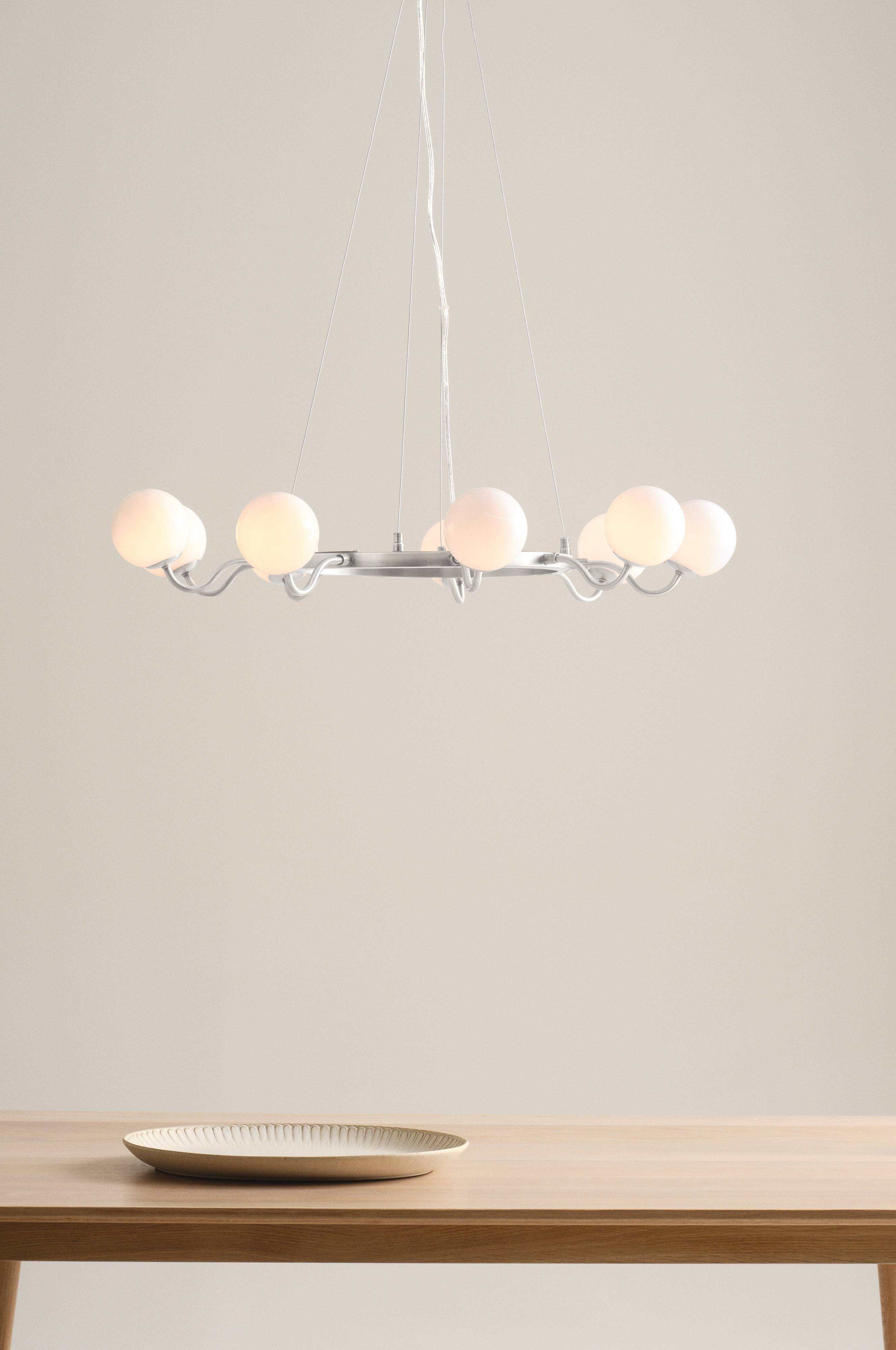 De CURVY kroonluchter is groot en elegant, gemaakt van metaal met negen glazen koepels, waardoor het een geweldig middelpunt is voor verschillende kamers. Deze kroonluchter is perfect om boven eettafels te hangen, maar verhoogt ook de sfeer in slaapkamers en woonkamers. Het geraffineerde ontwerp voegt een vleugje luxe en charme toe, past bij verschillende interieurstijlen en zorgt voor voldoende verlichting.