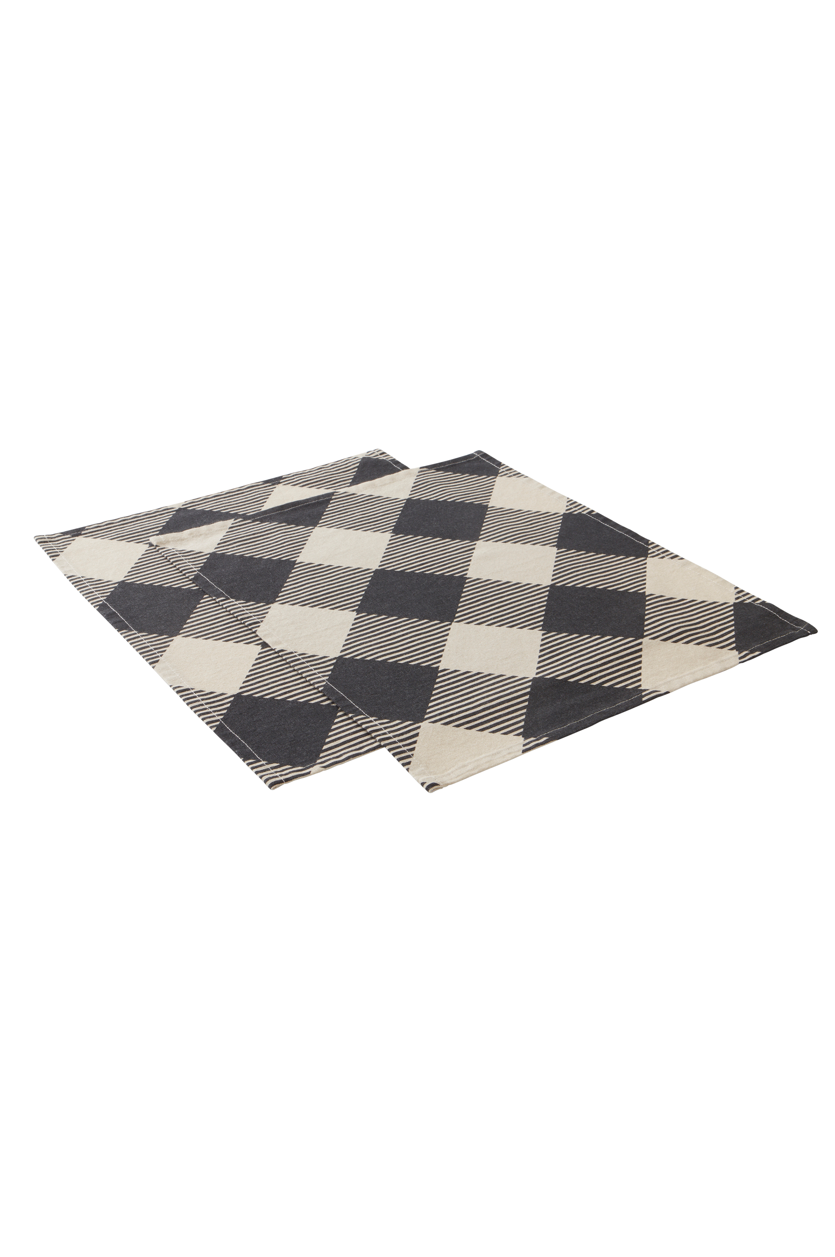 Een set van 2 placemats van halfpanama van gerecycled katoen met een geprint ruitdessin. DALIA heeft klassieke ruiten die zowel in een moderne als in een klassiekere keuken passen.