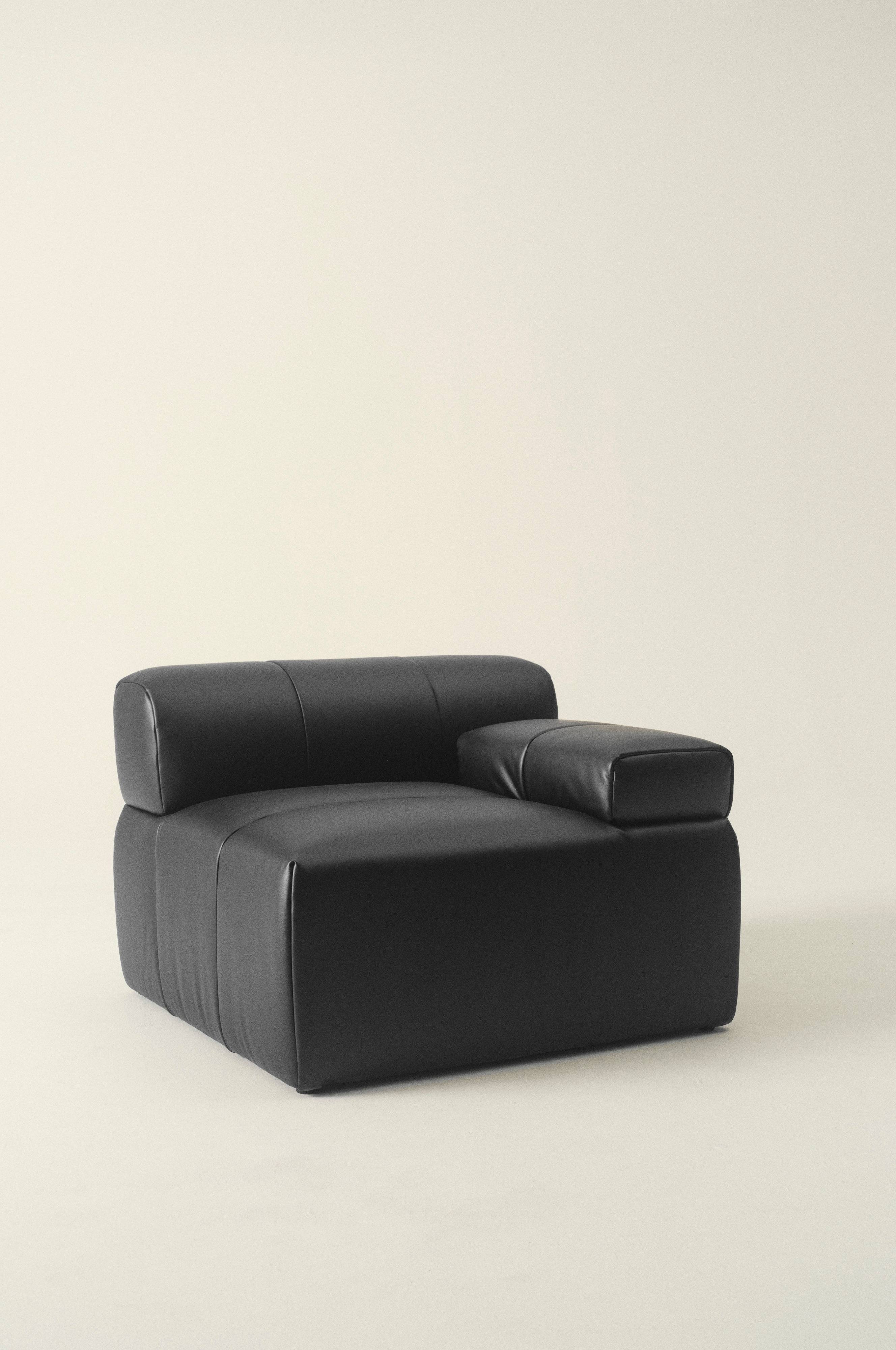 DERMY is een sofamodule die je onafhankelijk als fauteuil kunt gebruiken, of je kunt je eigen bank samenstellen met meer DERMY-modules. DERMY is zacht en rond van vorm en daardoor erg uitnodigend. De bekleding is een duurzame en onderhoudsvriendelijke mix van polyester en leer met een PU-coating.