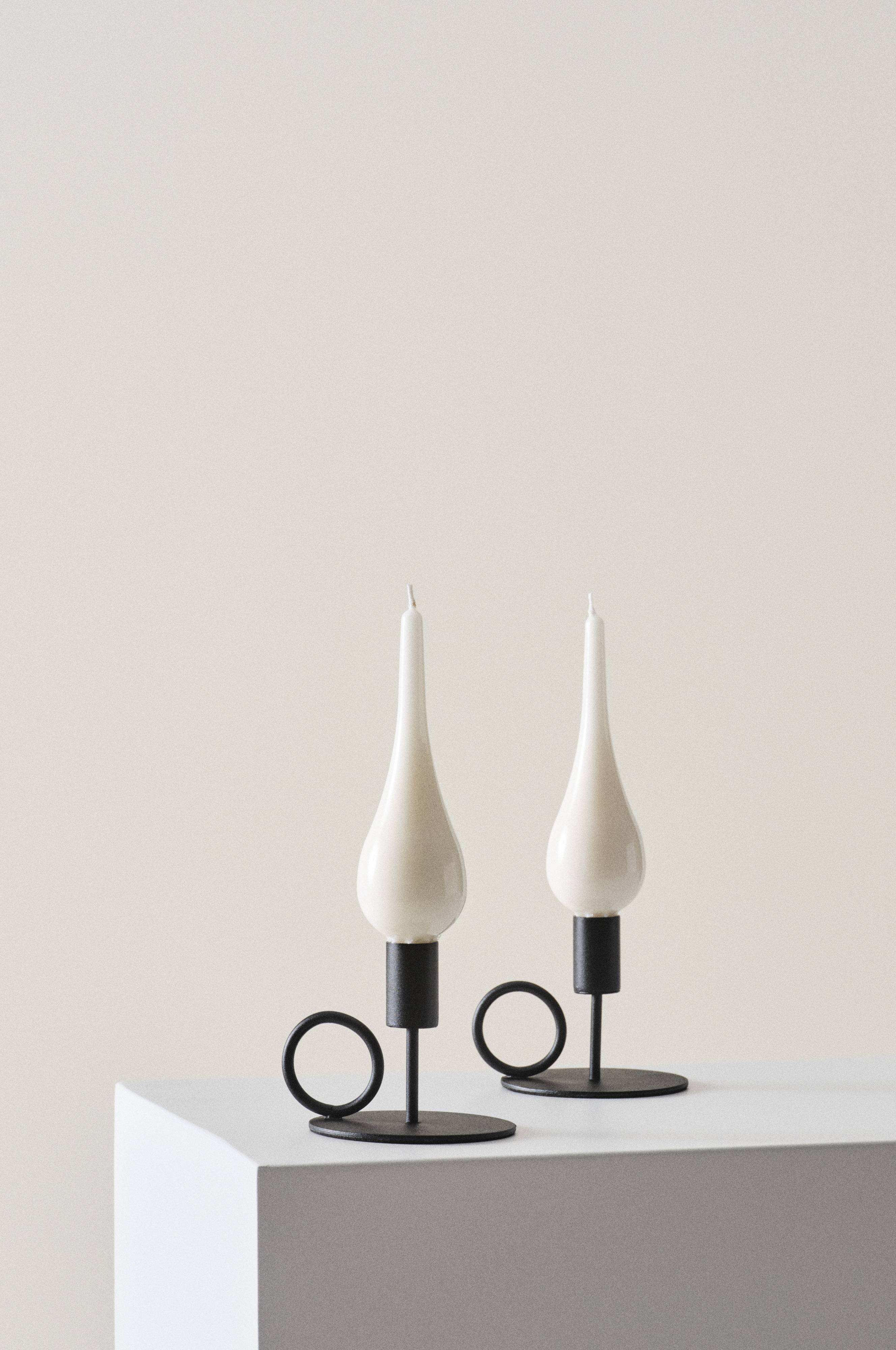 Een set van twee druppelvormige kaarsen van stearine die vervolgens in een kleur zijn gedoopt met een lakfinish. Deze mooie kaarsen zijn met de hand gemaakt in Zweden. Ze zijn druppelvormig en hebben een voetje waardoor ze in een gewone kandelaar passen. Kaarsen zijn een eenvoudige manier om het thuis gezellig te maken. Deze kaarsen branden met een grote, heldere vlam en de stearine bevat geen palmolie.