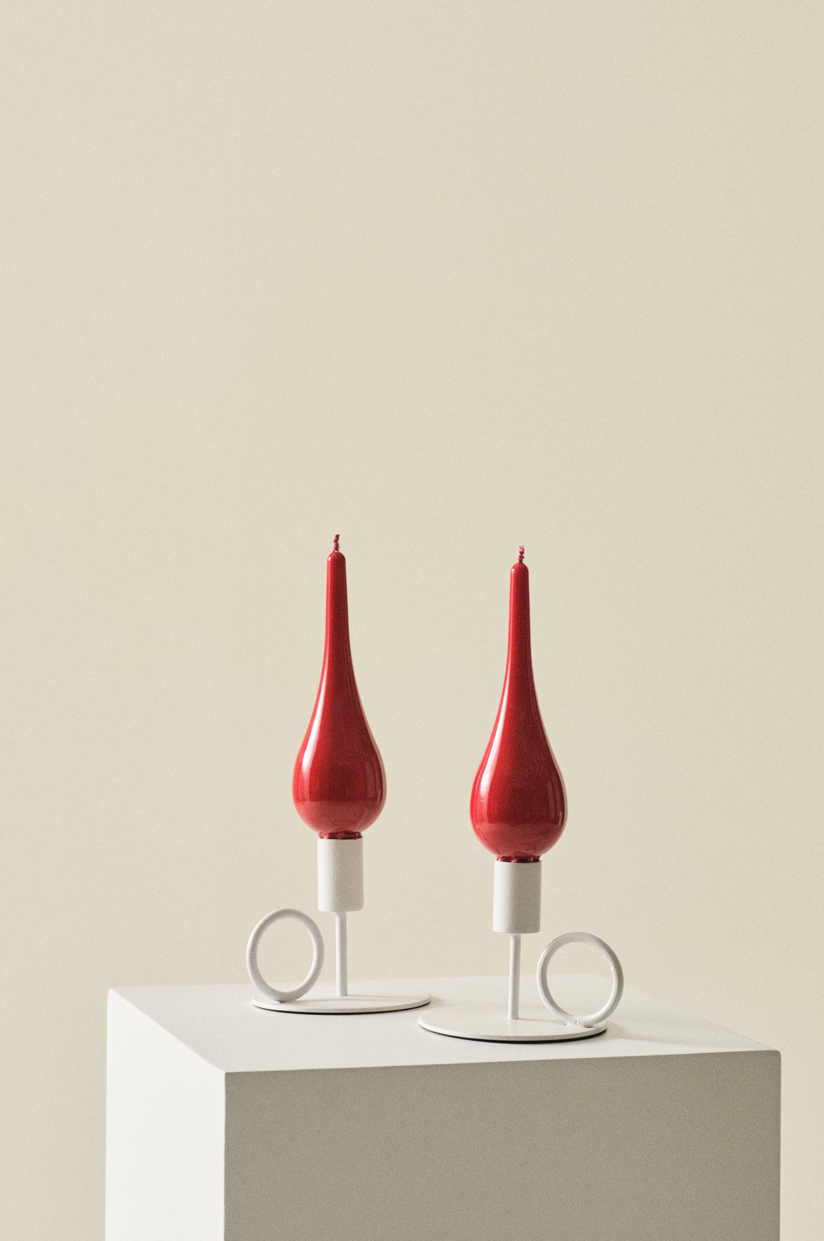 Een set van twee druppelvormige kaarsen van stearine die vervolgens in een kleur zijn gedoopt met een lakfinish. Deze mooie kaarsen zijn met de hand gemaakt in Zweden. Ze zijn druppelvormig en hebben een voetje waardoor ze in een gewone kandelaar passen. Kaarsen zijn een eenvoudige manier om het thuis gezellig te maken. Deze kaarsen branden met een grote, heldere vlam en de stearine bevat geen palmolie.