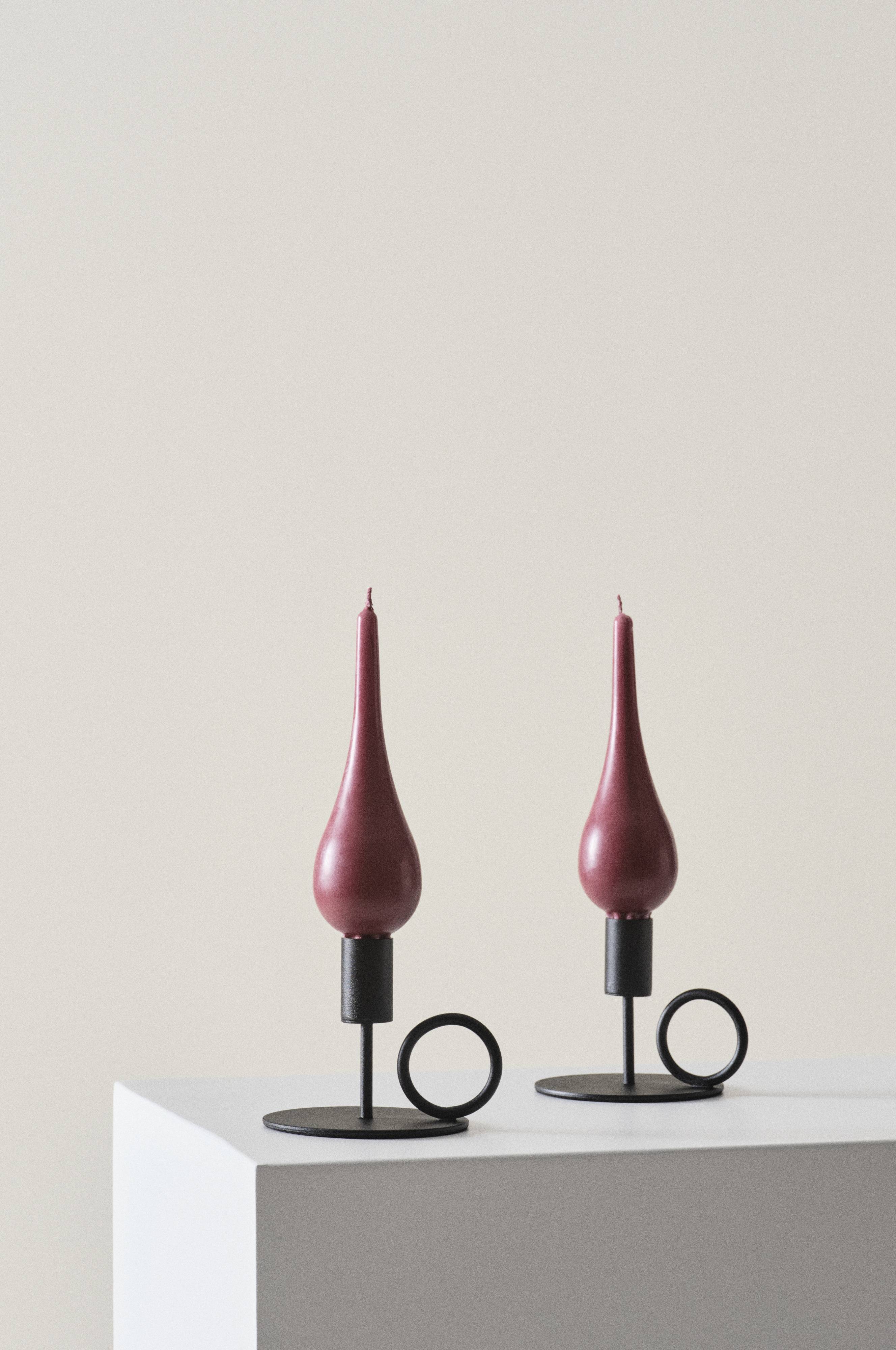 Een set van twee druppelvormige kaarsen van stearine die vervolgens in een matte kleur zijn gedoopt. Deze mooie kaarsen zijn met de hand gemaakt in Zweden. Ze zijn druppelvormig en hebben een voetje waardoor ze in een gewone kandelaar passen. Kaarsen zijn een eenvoudige manier om het thuis gezellig te maken. Deze kaarsen branden met een grote, heldere vlam en de stearine bevat geen palmolie.