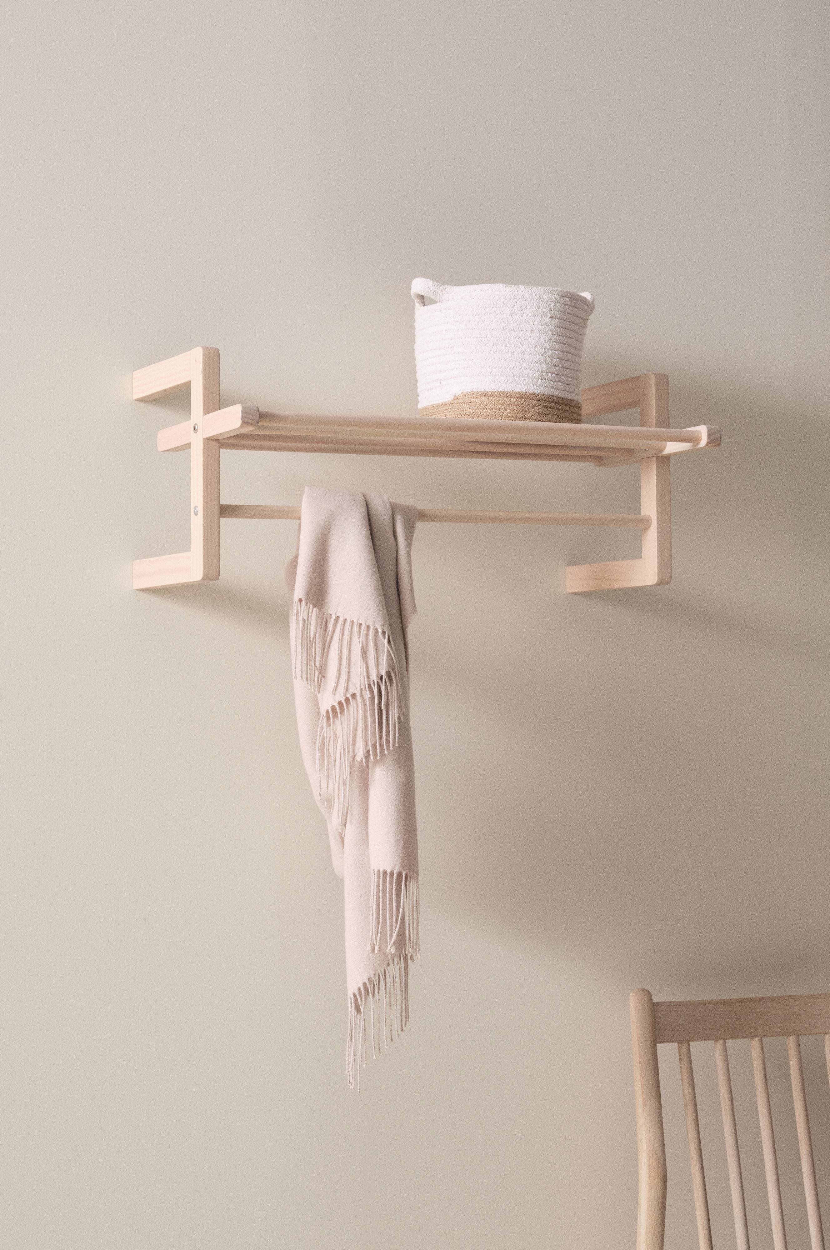 Een hoedenplank van FSC-gecertificeerd grenen. Deze hoedenplank om aan de wand te monteren heeft een strak, Scandinavisch design met een plank en een roede voor kledinghangers (hangers niet meegeleverd). Het model wordt op de gewenste hoogte aan de muur gemonteerd. Voor een fraaie montage aan de wand is de bevestiging onzichtbaar verwerkt. Enige montage is vereist.