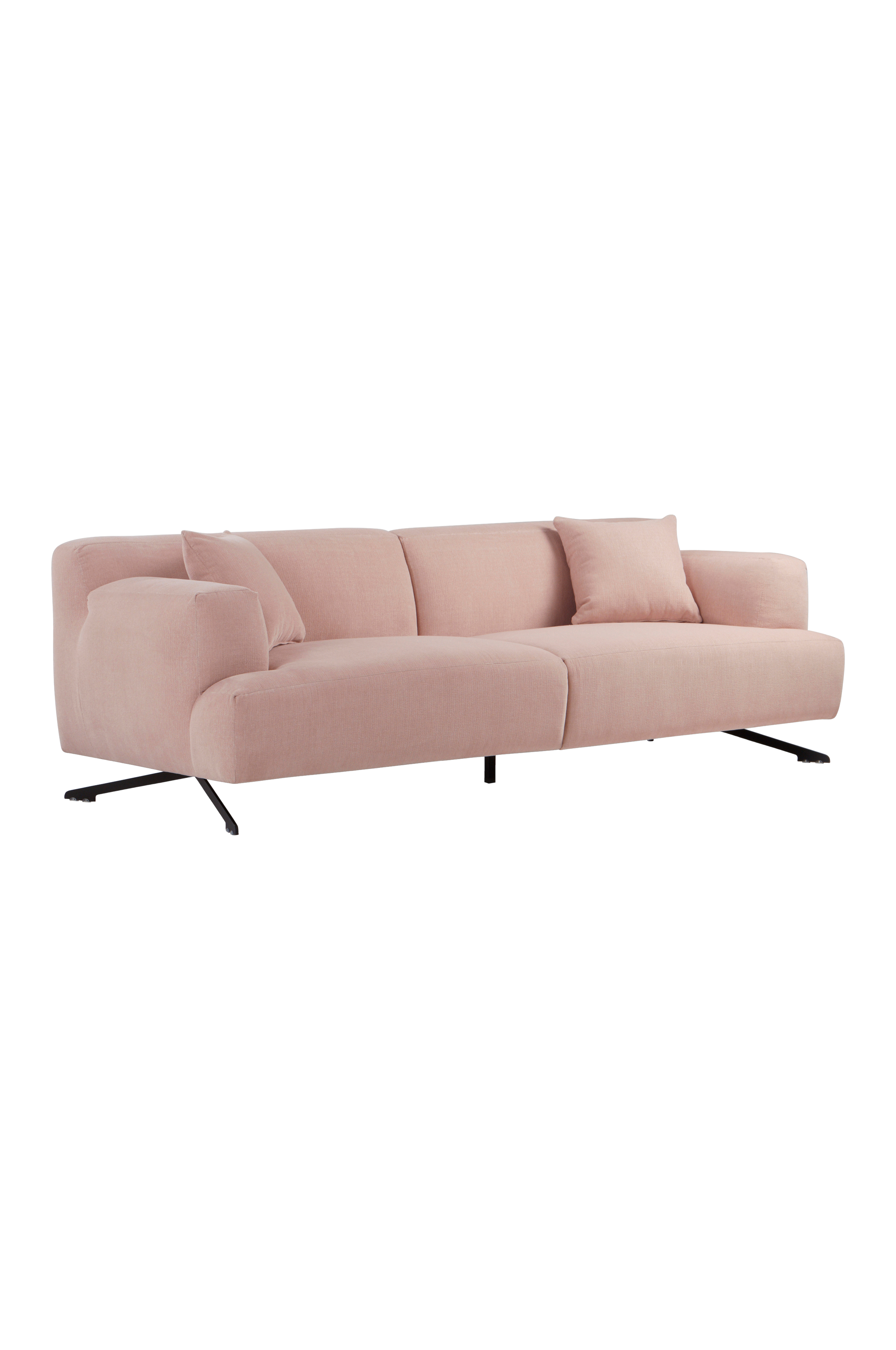 De EDE 3-zitsbank is een royale en uitnodigende bank met zachte vormen, de zwarte metalen poten contrasteren mooi met de zachtheid. De brede armleuningen zijn een comfortabel detail en voor wie meer van esthetiek houdt, zijn de kleuren aantrekkelijk en voelen ze nieuw en verfrissend aan. De bank heeft een multiplex frame met zachte schuimvulling die zorgt voor een heerlijk zitcomfort. De poten hebben een zwarte poedercoating.
