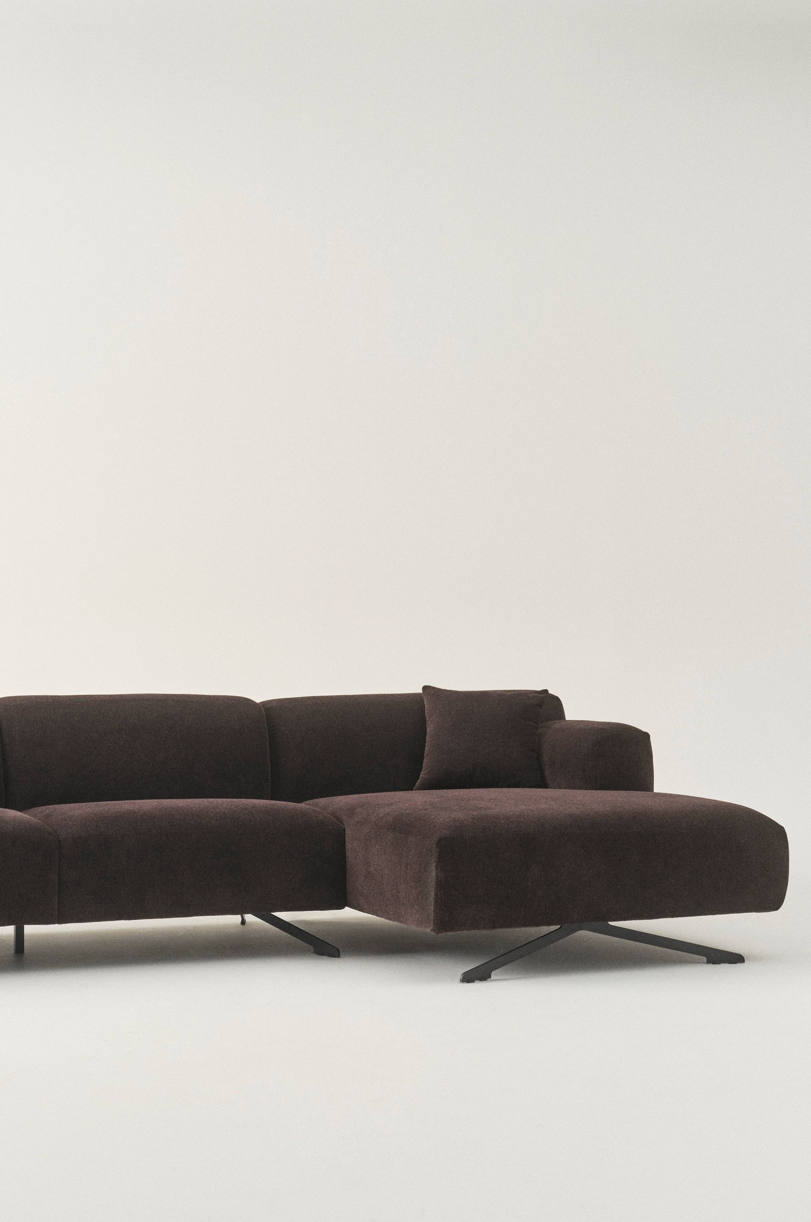 EDE 3-zitsbank is een grote, uitnodigende bank met zachte vormen die mooi contrasteren met de zwart metalen poten. De brede armleuningen zijn een comfortabel detail. Als je de esthetische aspecten het belangrijkst vindt, dan zullen de vernieuwende, frisse kleuren in de smaak vallen. Het hoekdeel zit heerlijk en je kunt er lekker je voeten opleggen na een lange dag. De bank heeft een frame van massief beuken en multiplex met een zachte schuimvulling, de zitting heeft zigzagveren voor een heerlijk zitcomfort. De poten hebben een zwarte poedercoating. Enige montage is vereist. Montage-instructies worden meegeleverd.