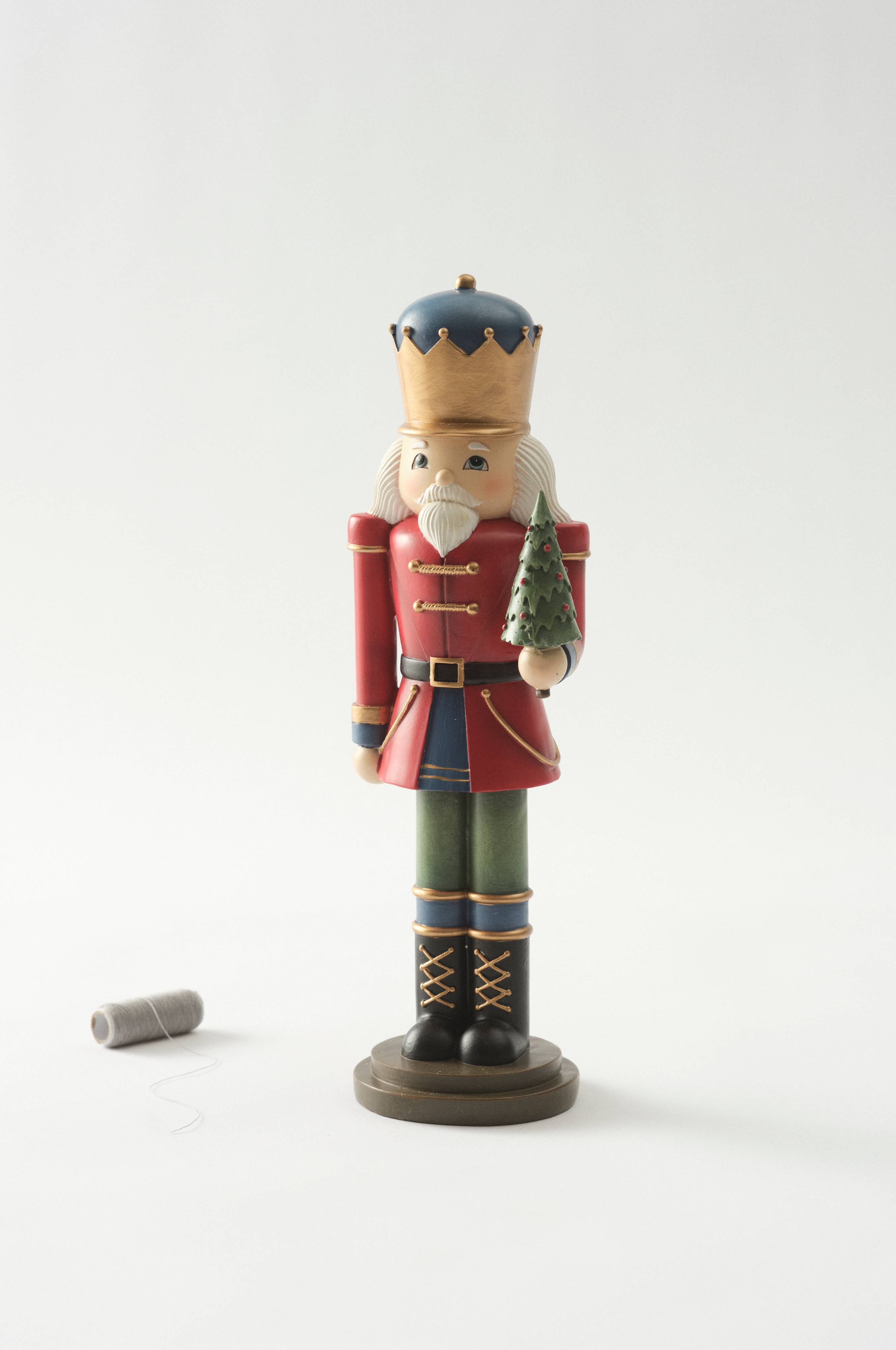 Een met de hand beschilderd decoratief beeldje van polyhars. Trots houdt EDWARD een kleine kerstboom vast en hij is geschilderd in traditionele kerstkleuren. Door het handwerk is elk beeldje uniek.