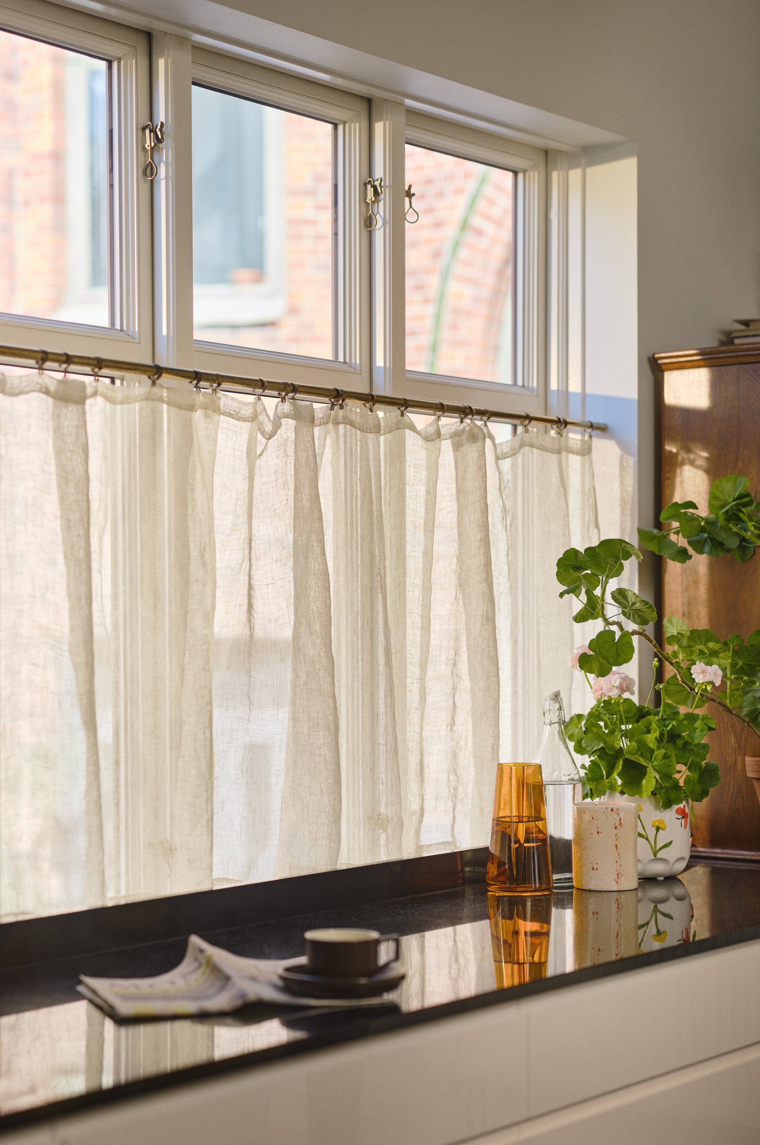 Het vlas café-gordijn ELLEN verheft je ruimte moeiteloos en biedt een verfrissende mix van ongedwongen elegantie en privacy. De vlasstof straalt een natuurlijke charme uit en het ontwerp kan eenvoudig aan een gordijnroede worden gehangen, perfect voor een licht interieur met een vleugje intimiteit.