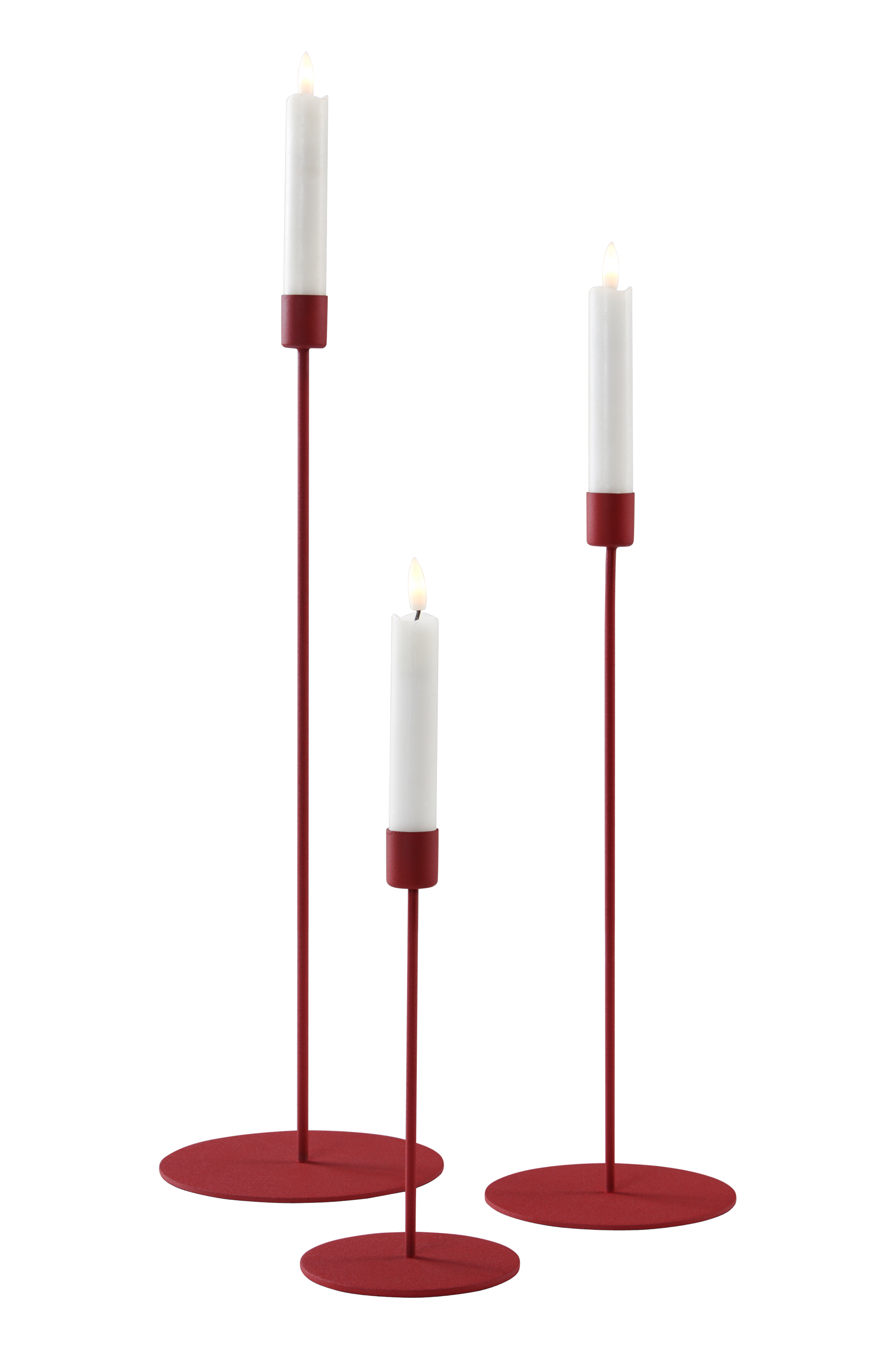 Een set van drie smalle kandelaars van gepoedercoat ijzer. Perfect voor iedere dag en een feest.