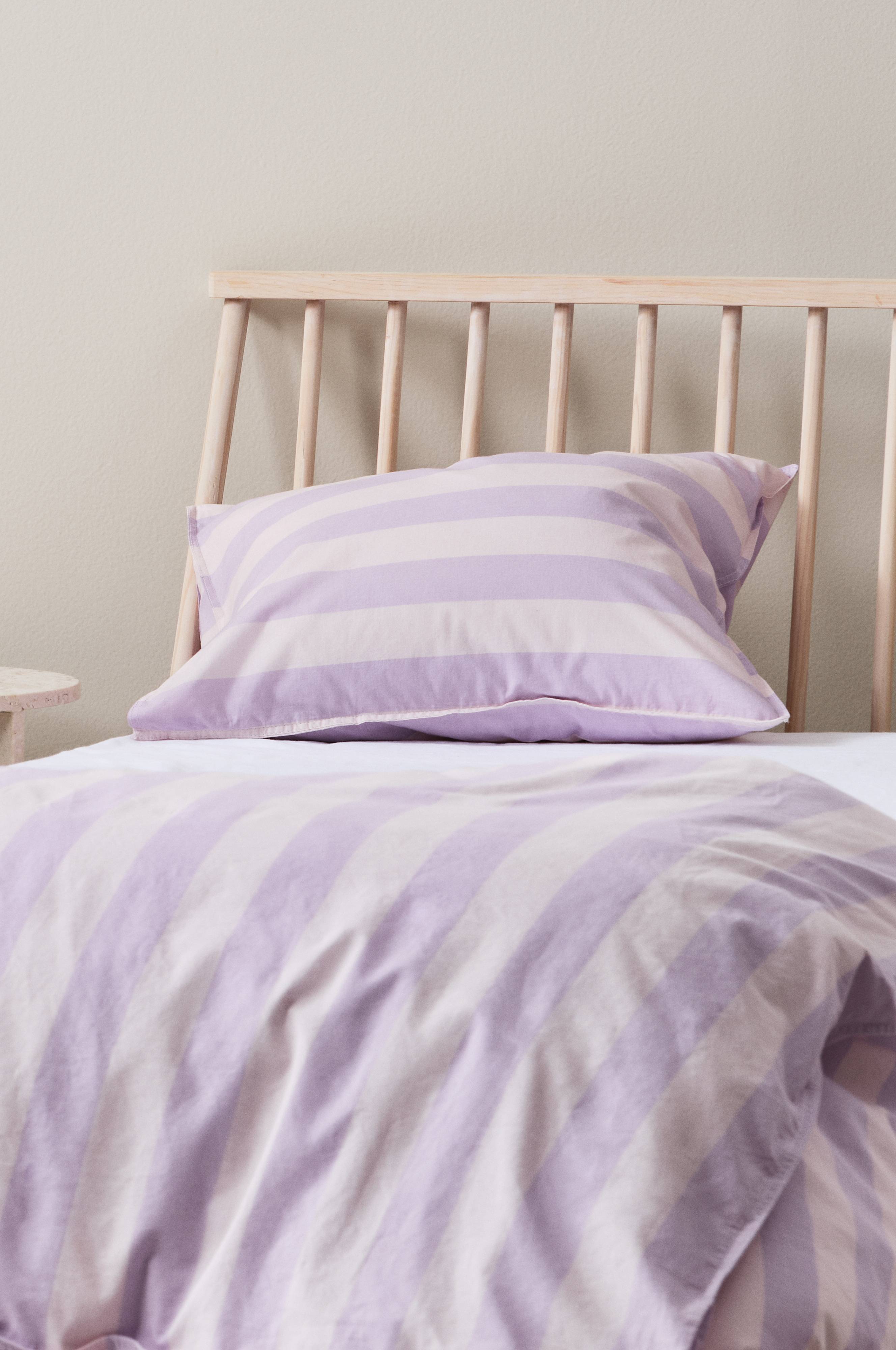 Een kussensloop van biologisch katoen. De set is geschikt voor een ledikant. Geprinte blokstrepen zien er altijd fris uit, ook voor de kleinsten. Slapen onder biologisch katoen voelt koel en aangenaam aan. Het kussensloop is na het naaien gewassen zodat het extra zacht en fijn aanvoelt. De dubbele naad rondom zorgt voor een exclusieve uitstraling. Draaddichtheid 144. (De draaddichtheid geeft het aantal draden aan per vierkante inch van een stof. Hoe hoger de draaddichtheid, hoe hoger de kwaliteit).