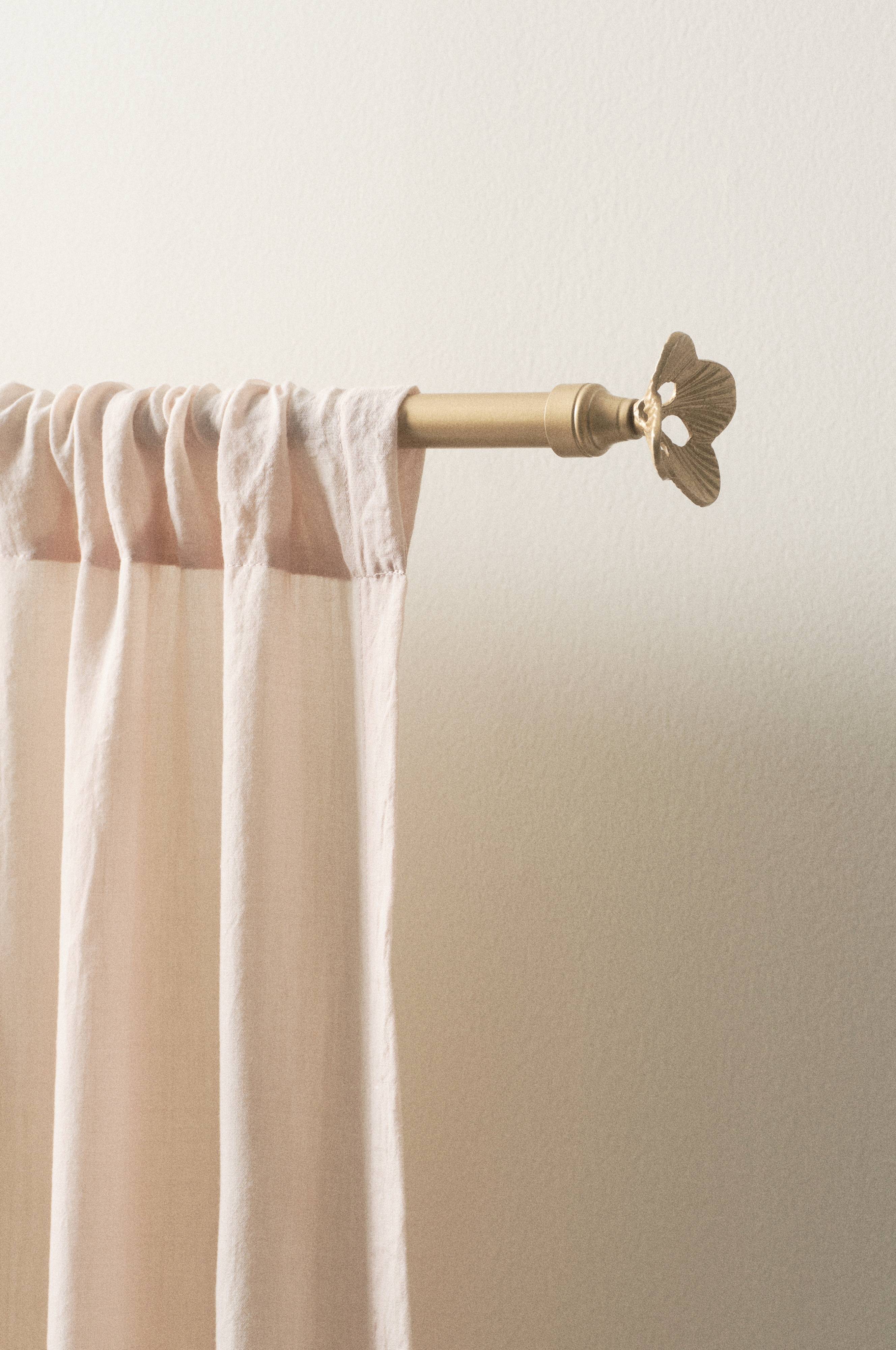 Afmetingen: Verstelbaar 276-385 cm. Drie roedes van 138 cm, ø 1,6/1,9 cm. Lengte sierknoppen 5 cm, ø 6 cm. Verstelbare afstand tot de muur 9-11 cm.