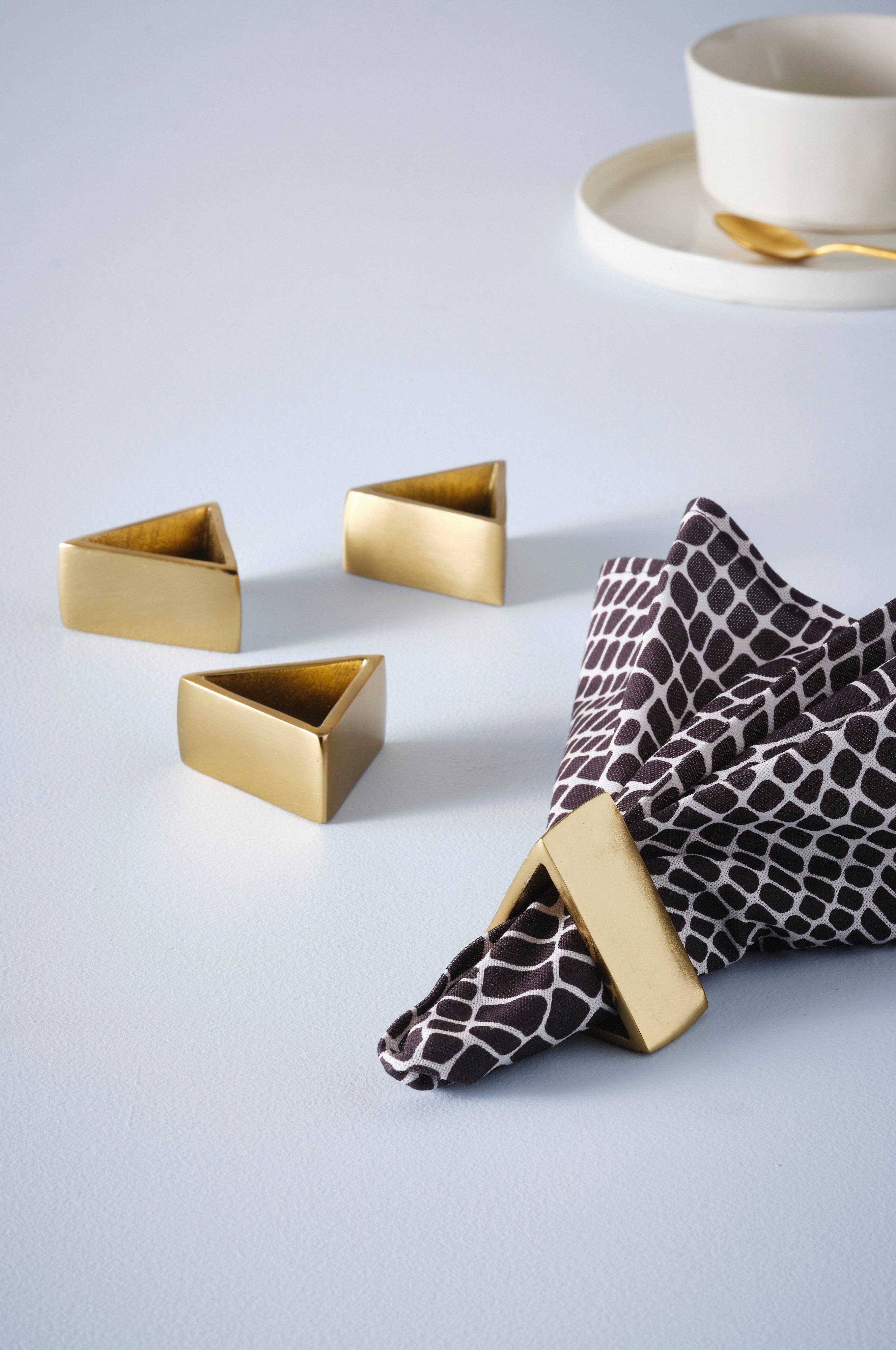 Een set van vier servetringen van aluminium in een bijzondere vorm als stijlvolle details op een mooi gedekte tafel.