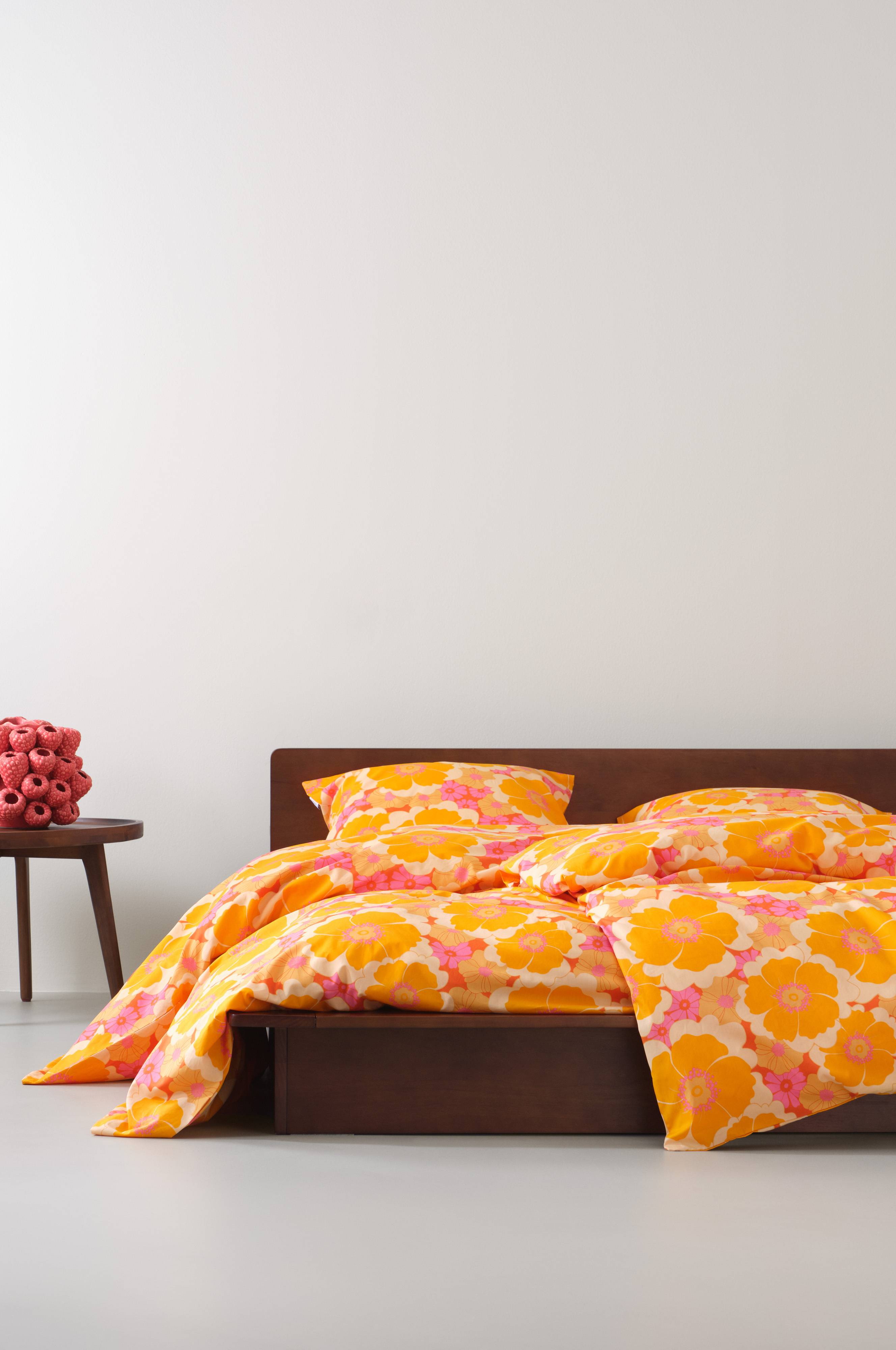 Dekbedovertrek FRIDA brengt een vleugje retro glam in je slaapkamer met een patroon ontworpen door Maria Carlberg. Het is gemaakt van ecologisch perkal voor een zacht gevoel en heeft een levendig patroon met reactieve print. Verborgen drukknopen aan de onderkant zorgen voor probleemloos gebruik. Verhoog je slaapplek met het tijdloze ontwerp van FRIDA.