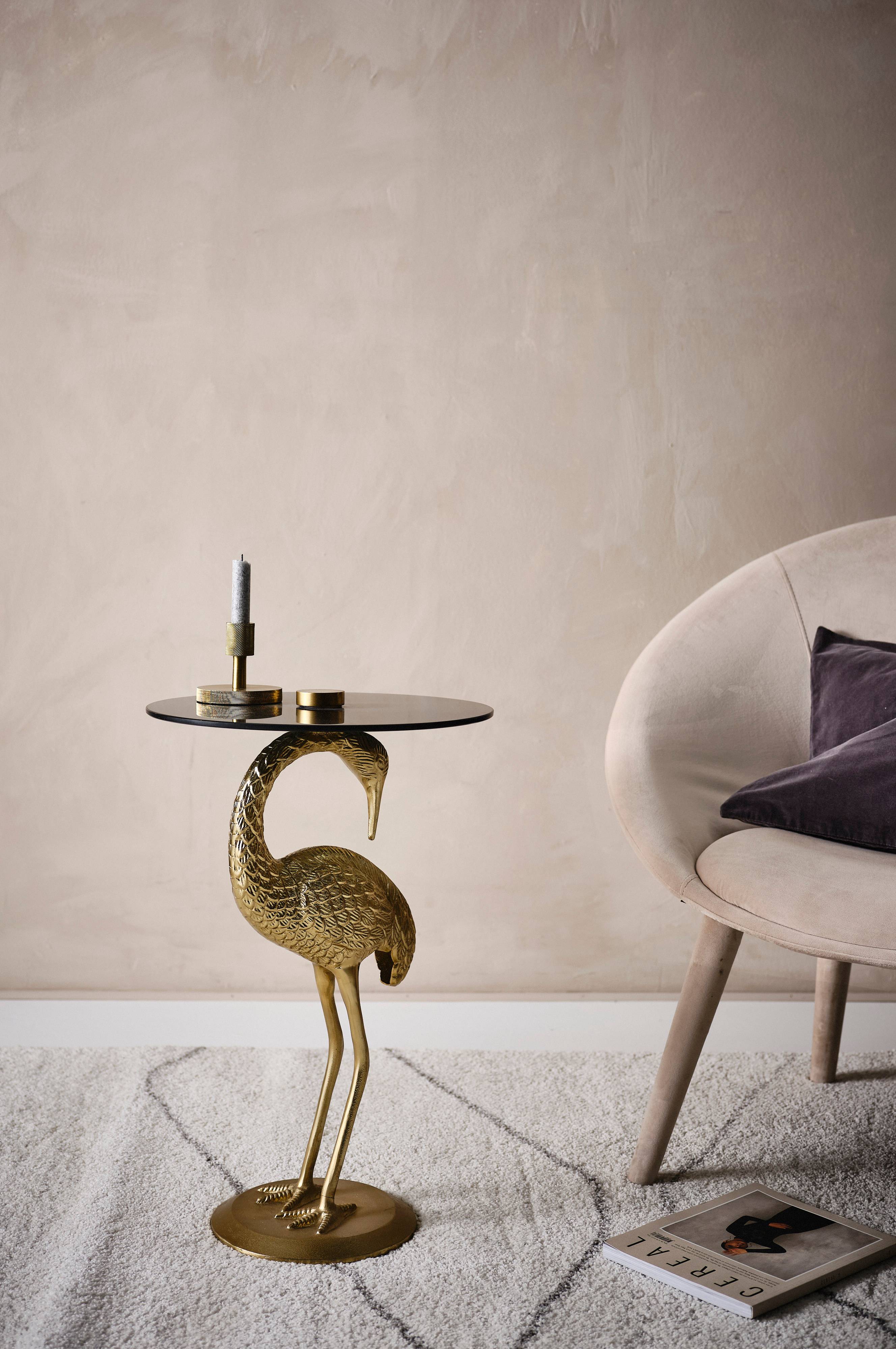 Deze geweldige flamingotafel met een gegoten onderstel van metaal en een klein rond tafelblad van glas wordt een leuke eyecatcher in je interieur. Bijzettafel GALAPAGOS is overal een leuke verrassing. Enige montage is vereist.
