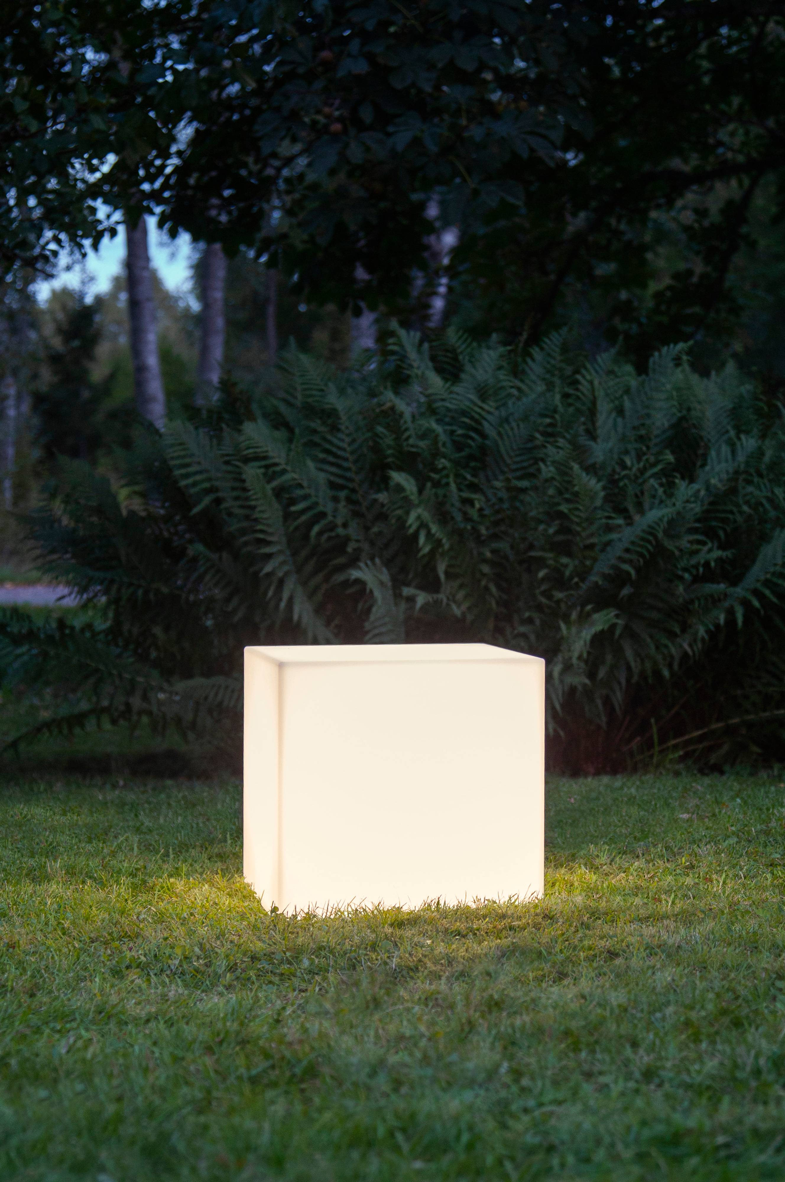 Een decoratieve lichtkubus voor buiten, het terras, het balkon of de tuin. Verander de lichtsterkte door verschillende soorten lichtbronnen uit te proberen.
