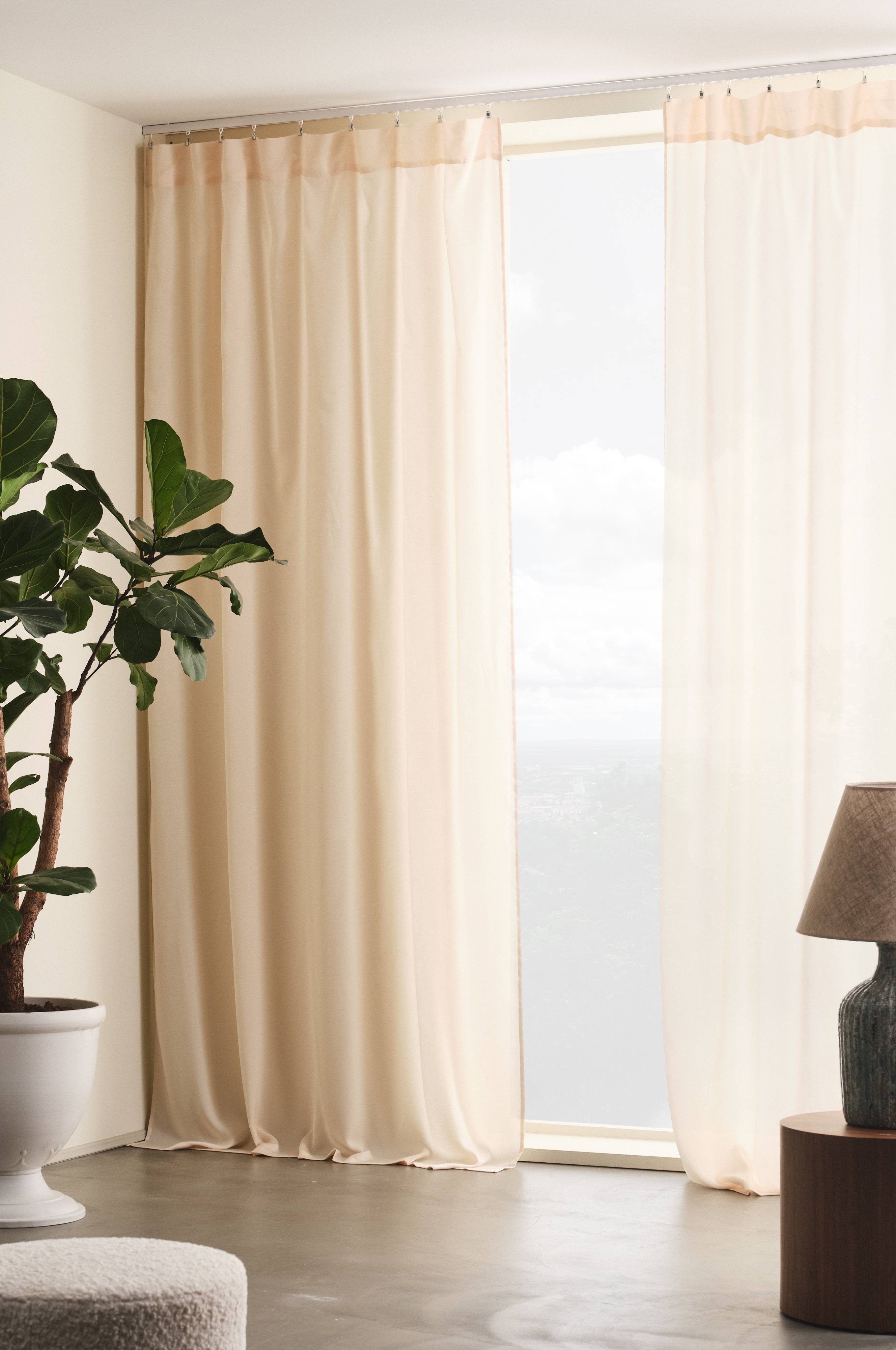 Dunne gordijnen, niet zo breed, het liefst zou je er dubbele moeten hebben. De val van het gordijn is mooi, prachtige kleur.