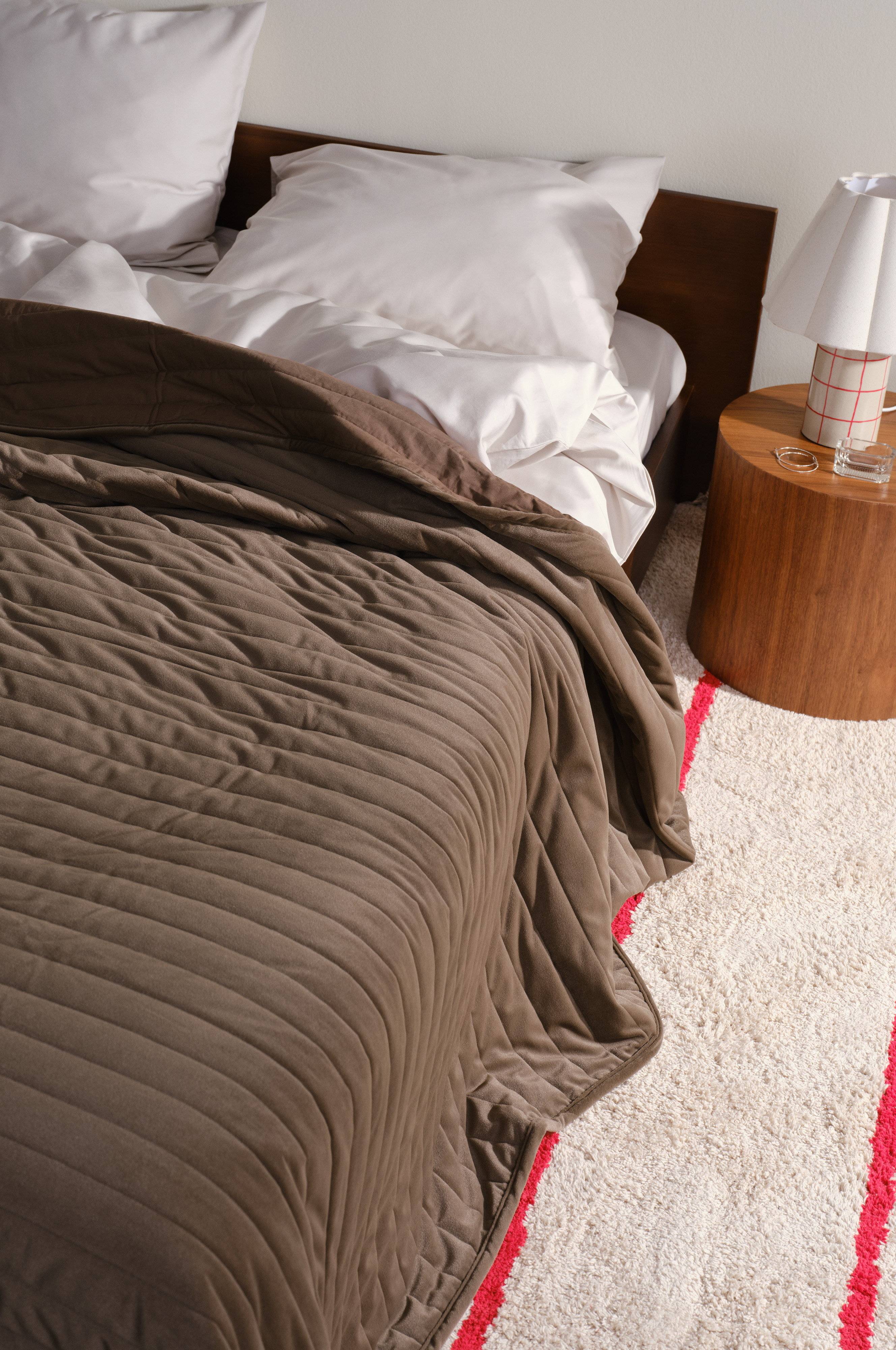 De GURI sprei creëert een gezellige, uitnodigende sfeer in elke slaapkamer. De sprei is gemaakt van fluweel en heeft een doorgestikt streeppatroon voor extra textuur en diepte. Gemaakt van 50% gerecycled polyester, biedt deze sprei een perfecte mix van comfort en eigentijds design. Ideaal om een vleugje luxe toe te voegen aan je leefruimte, de GURI sprei verandert je bed in een stijlvol middelpunt.