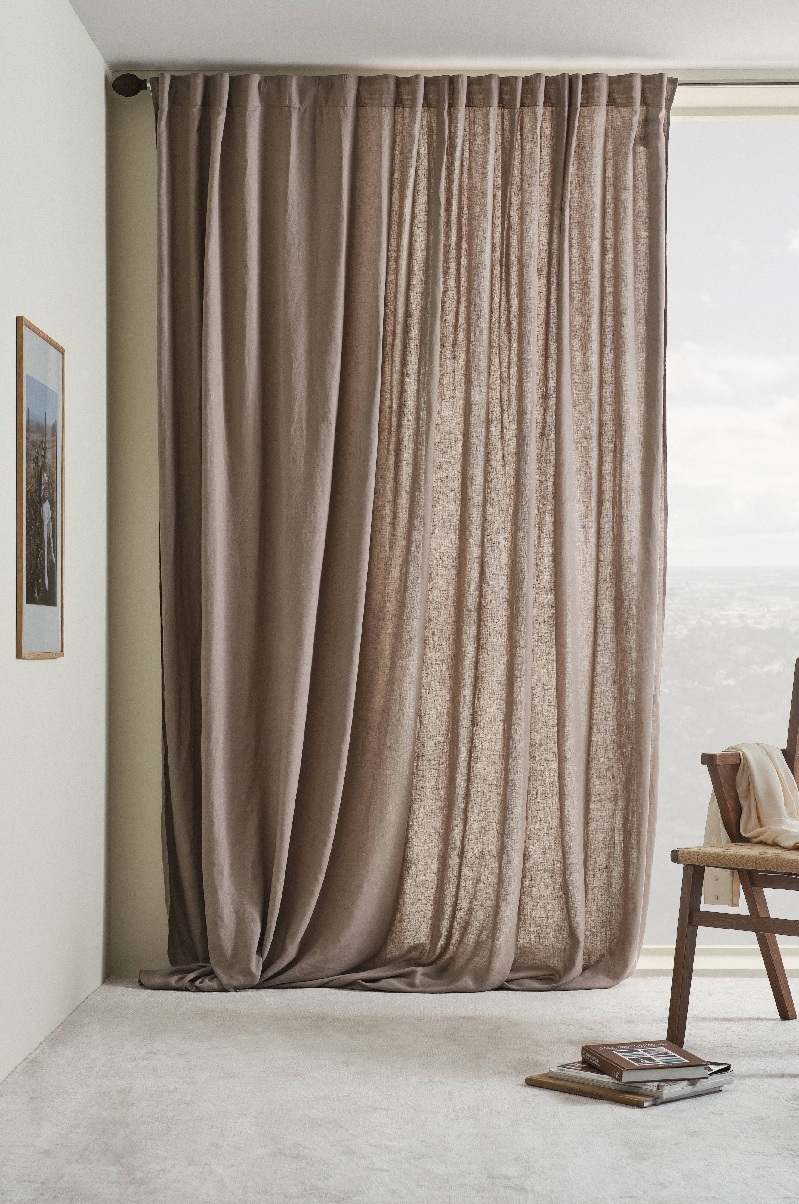 Een gordijn van een aangename, gewassen kwaliteit die mooi valt. Hennep en lyocell zijn gecombineerd in een stof met een matte, linnenachtige uitstraling. Het gordijn heeft vastgestikt multifunctioneel gordijnband en kan met vingerhaken, roedetunnel of blinde lussen worden opgehangen.