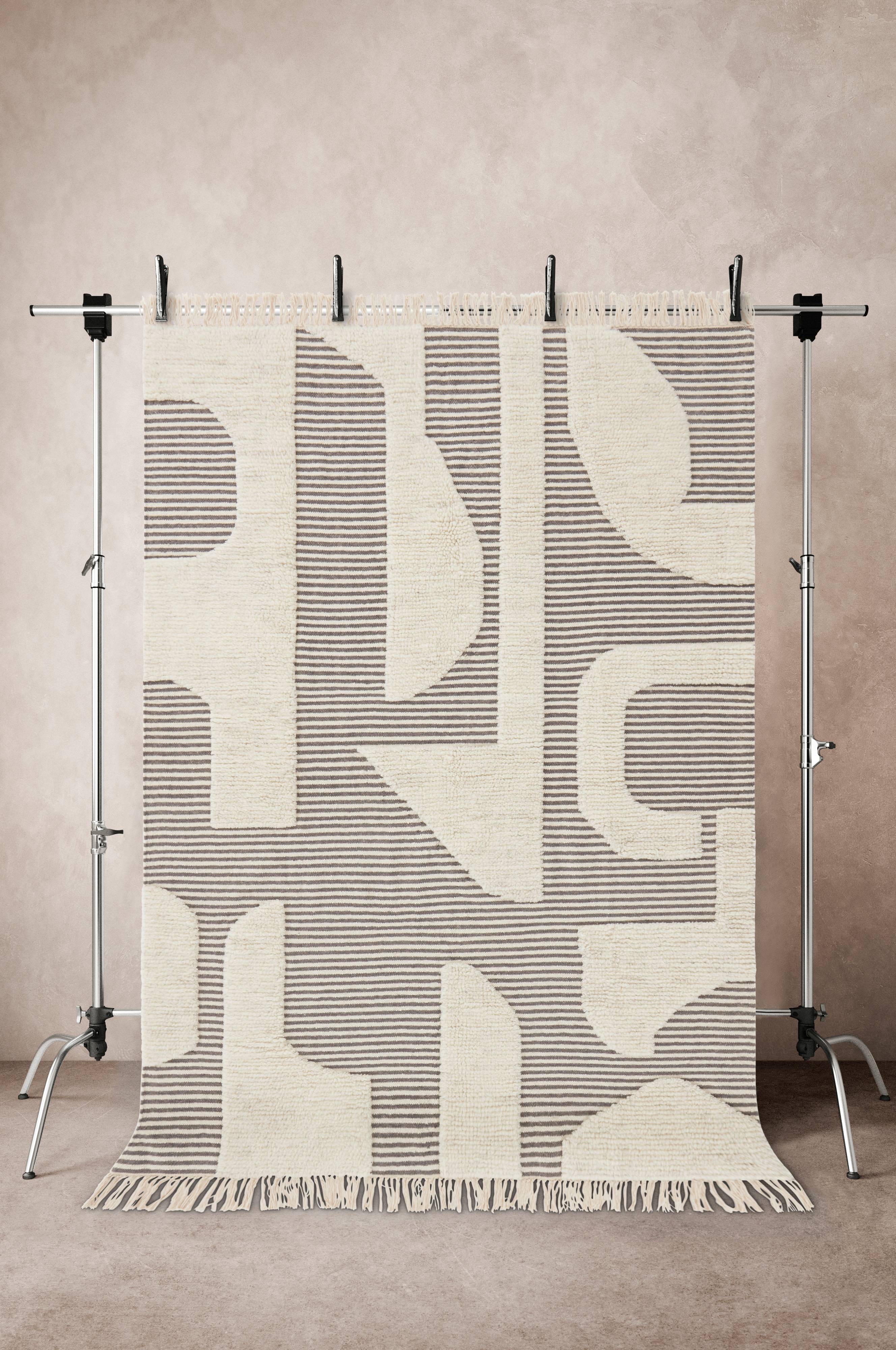 Een met de hand geweven vloerkleed van wol en katoen. HASSANE is in de basis een kelim, wat een gladgeweven vloerkleed is. Sommige delen zijn vervolgens getuft en een zachte pool gekregen. Dit maakt vloerkleed HASSANE bijzonder. Het onderscheidt zich van de rest met zijn lichte delen met pool op een gladgeweven ondergrond met ingeweven strepen. Kelims worden vaak van natuurlijke materialen gemaakt. HASSANE is gemaakt van wol en katoen. Wol is een praktische keuze, omdat wol van nature vuilafstotend is. Het vloerkleed heeft franje aan de korte zijden. Lengte franje 10 cm. Poolhoogte 1,4-1,5 cm. Dikte 1,6-1,7 cm. 1500-1700 gr./m².