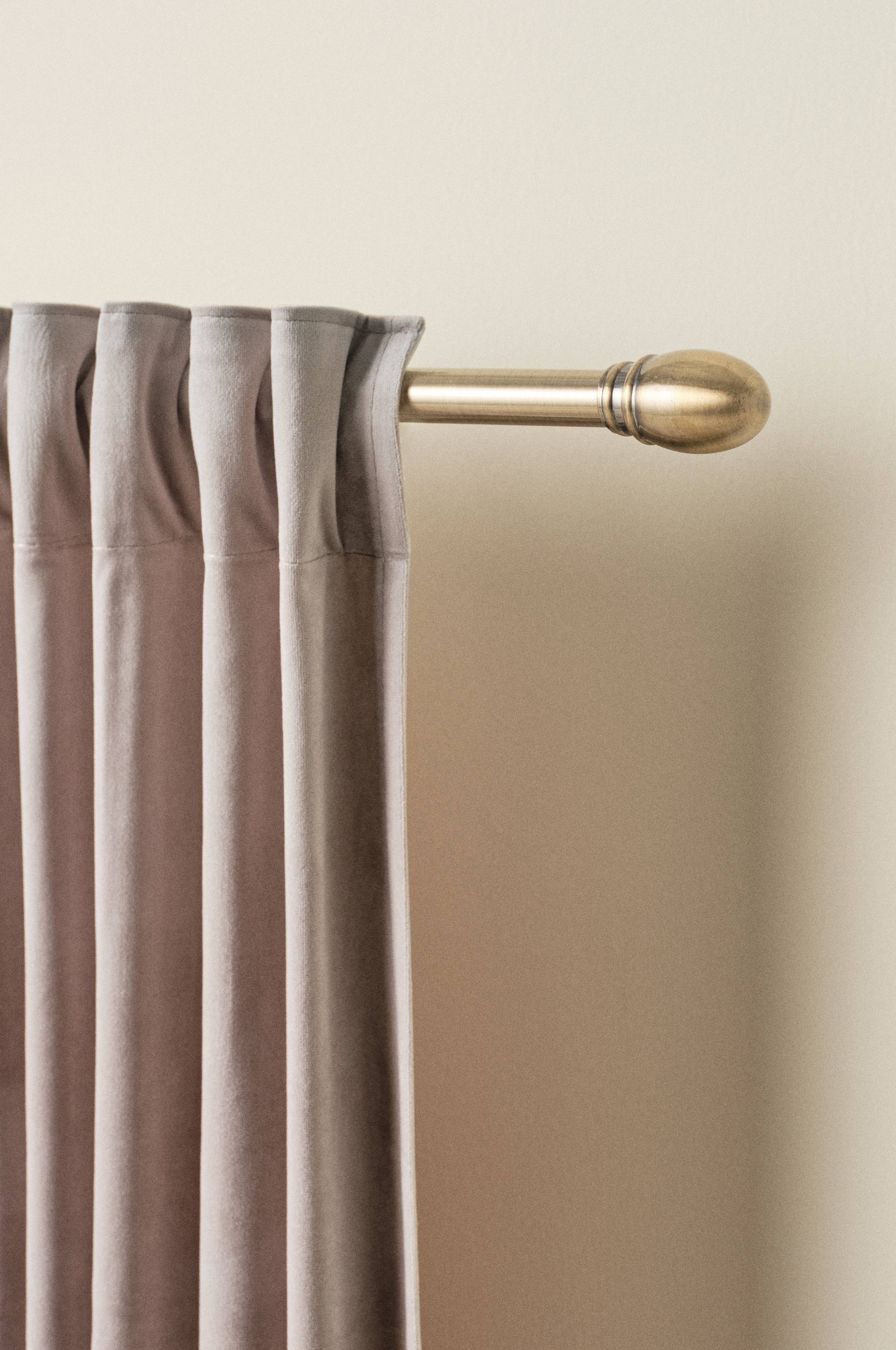 Een complete gordijnroedeset met een in breedte verstelbare roede, zodat de set ook geschikt is voor ramen met afwijkende maten. Inclusief sierknoppen en verstelbare houders. Met de verstelbare houders bepaal je zelf de afstand tot de muur, van 10 tot 15 cm. Zo kan het gordijn vrij hangen zonder de vensterbank te raken.