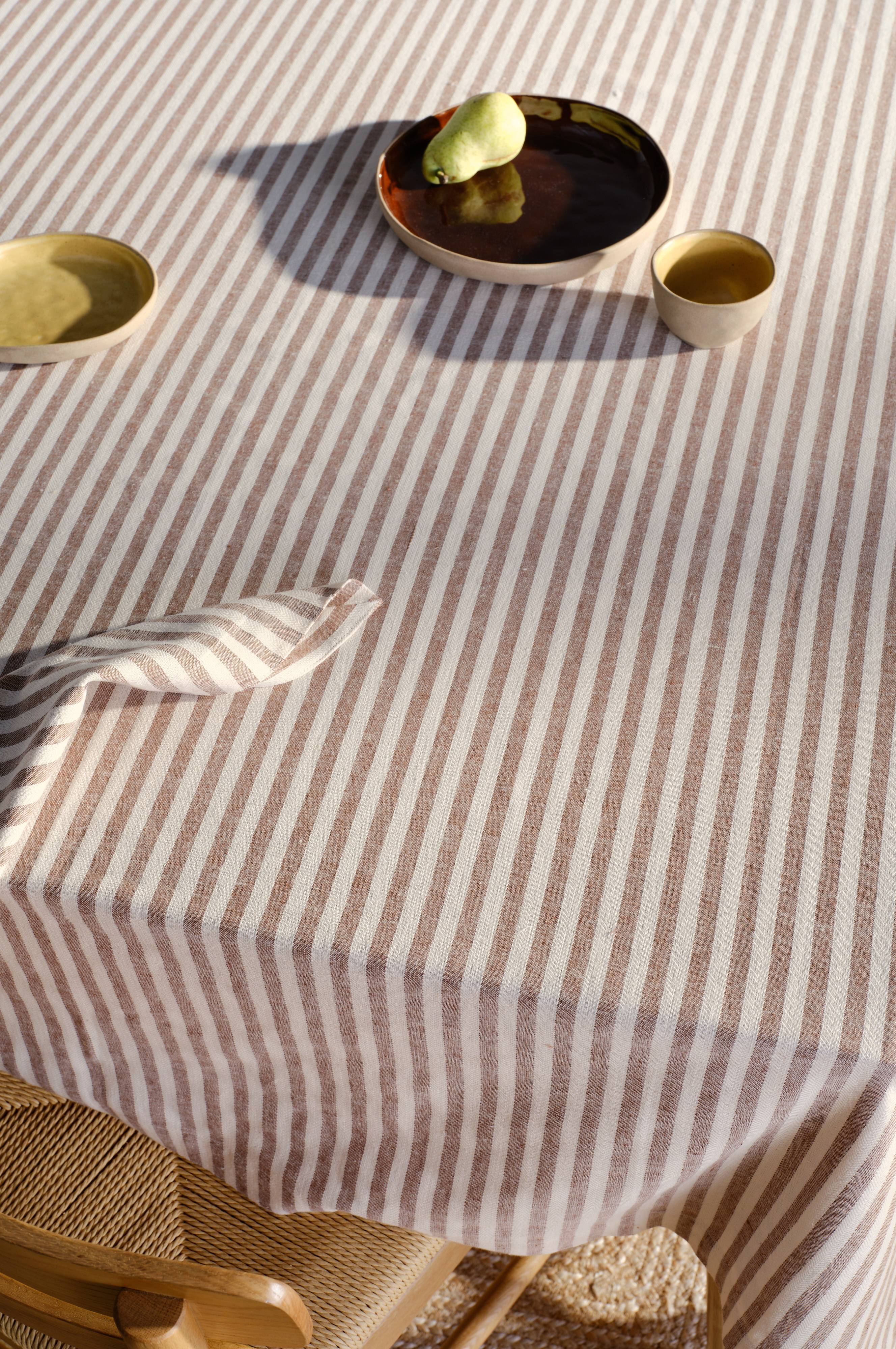 Het HERIBERT tafelkleed geeft je eetkamer een klassiek tintje met zijn garengekleurde gestreepte stof. Gemaakt van een mix van katoen en vlas, biedt het een heerlijke mix van texturen. Dit tafelkleed maakt deel uit van de HERIBERT familie en is prachtig te combineren met bijpassende artikelen voor een samenhangend decor. Het is perfect om een geraffineerd accent aan je eetervaring toe te voegen en combineert tijdloos design met comfort.
