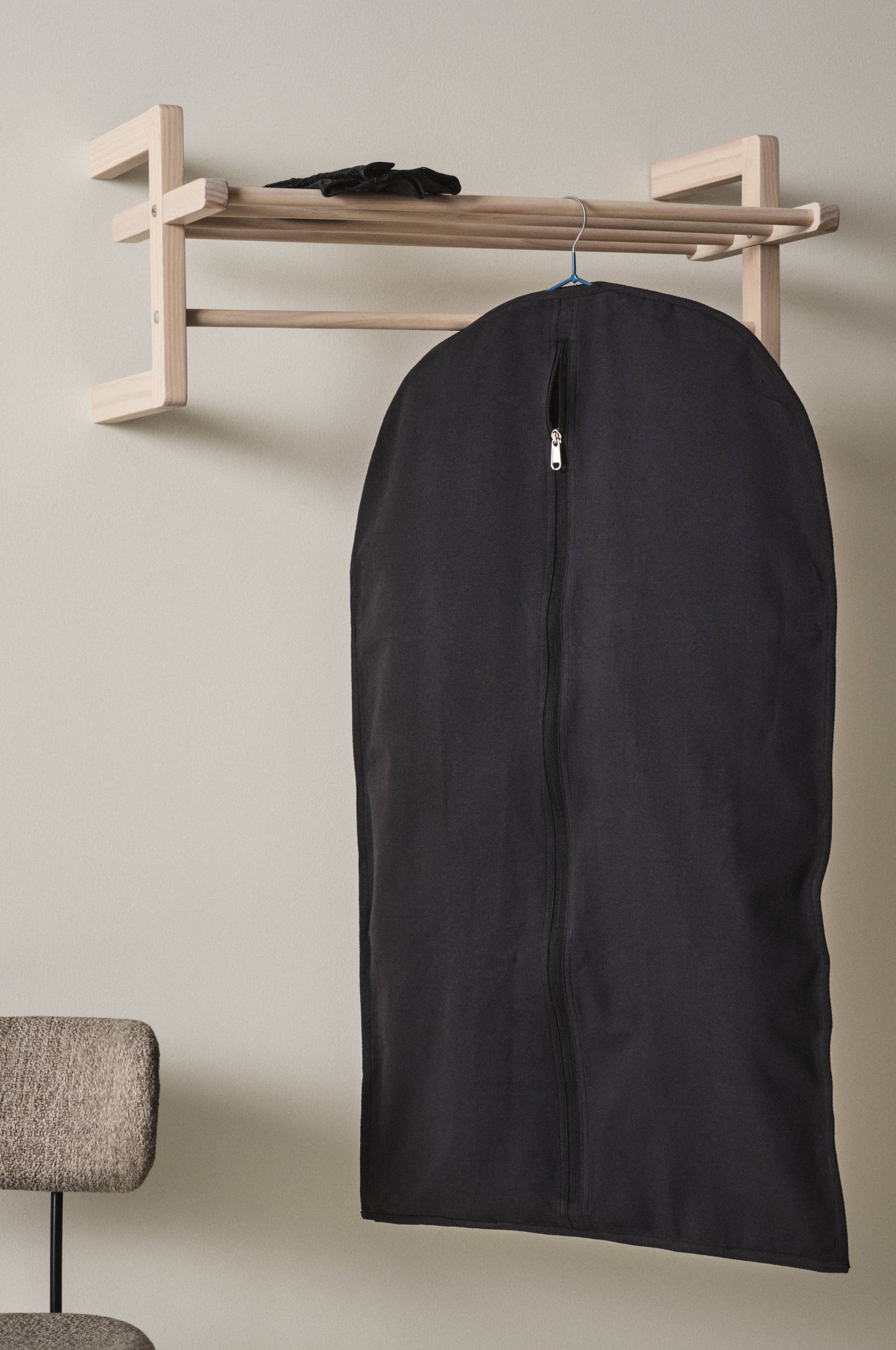 Een kledinghoes van katoen met een rits voor en een opening boven voor de kleerhanger waar je bijvoorbeeld je blazer of blouse aan hebt gehangen. Vervolgens kun je je kledingstuk beschermd in je kledingkast of in de auto ophangen. Een kledinghoes is heel handig en beschermt je kleding, of je nu thuis of op reis bent.