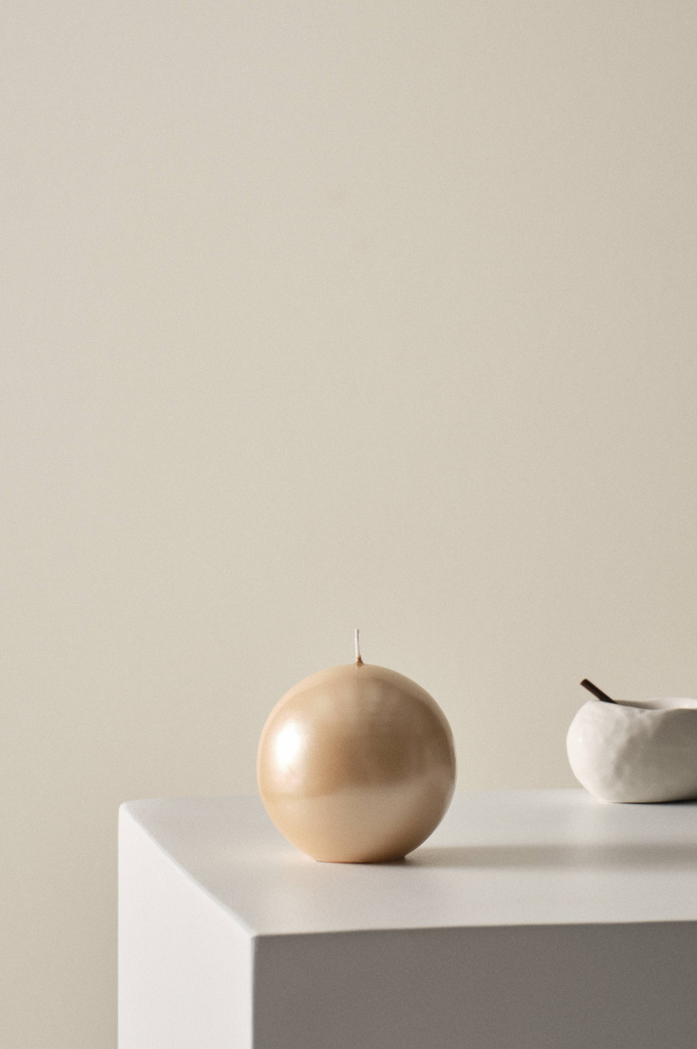 Een bolkaars van paraffine die in een metallic kleur is gedoopt. Deze mooie, ronde kaars is met de hand gemaakt in Zweden. Kaarsen brengen een gezellige sfeer in huis als het buiten donker is. Paraffine heeft goede brandeigenschappen en het RAL-keurmerk laat zien dat de paraffine met weinig rook en roet brandt.